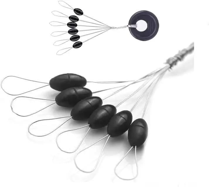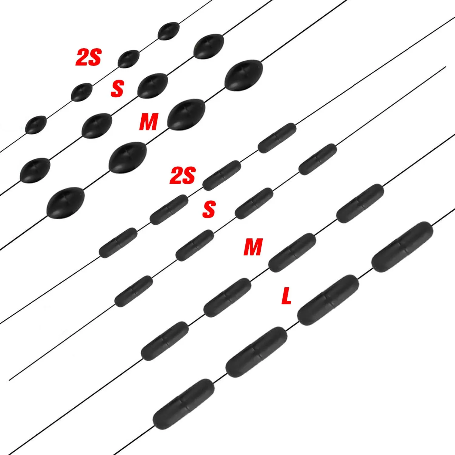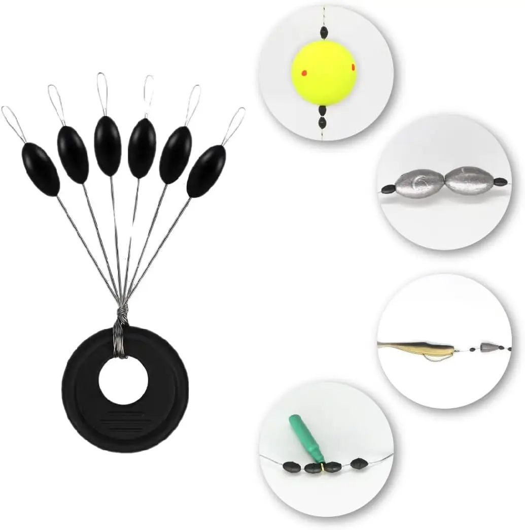 ZUKIBO 600 Uds 100 grupos juego de frijoles espaciales de goma tapón ovalado pesca Bobber tanque parada flotador pesca 6 en 1 parada de pesca con alambre