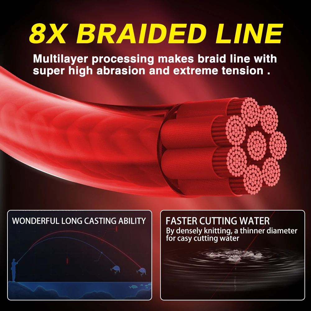 1.Adopte tecnología avanzada de trenzado japonés, alambre de pesca trenzado de ultra densidad.