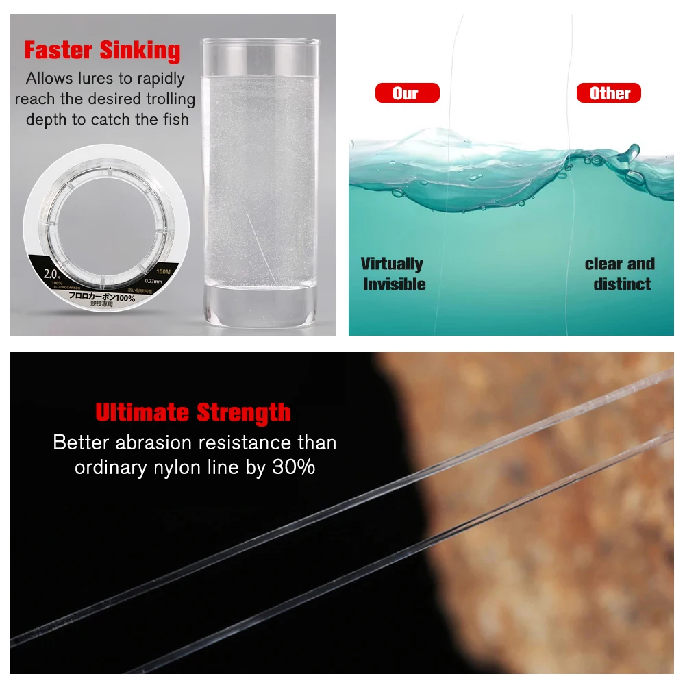 2.Virtually Invisible: The fluorocarbon's light-refractive index is nearly identical to water, makes line virtually invisible to fish in the water for a stealthy presentation, which could be used in any water conditions