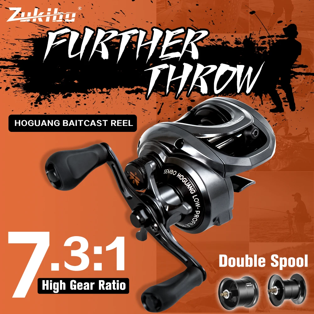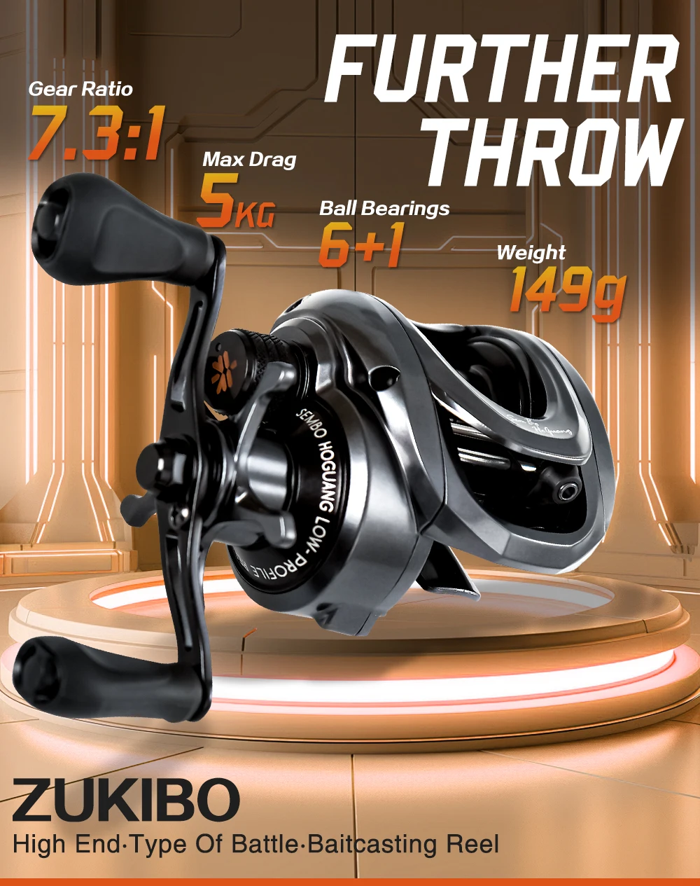 ZUKIBO HONGGUANG 149G Baitcasting carrete 6 + 1BB Max Drag 5kg relación de engranaje 7,3: 1 carrete de pesca de alta velocidad para lubina agua salada Baitcaster