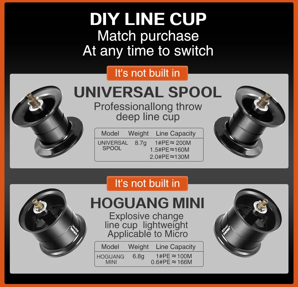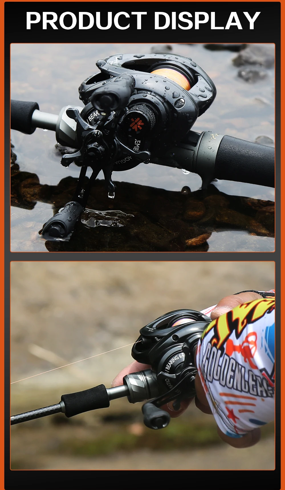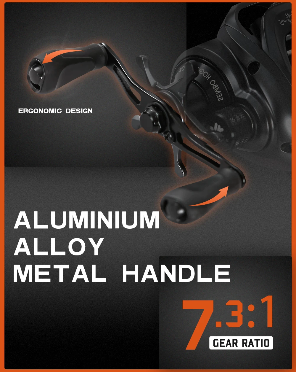 ● Ligero: con un peso de solo 149g/5,3 oz, el carrete HONGGUANG Baitcasting tiene un marco estrecho de nailon con fibra de vidrio que es ultraligero y ultrapotente. El carrete de pesca de bajo perfil de tamaño compacto está diseñado ergonómicamente para la comodidad.