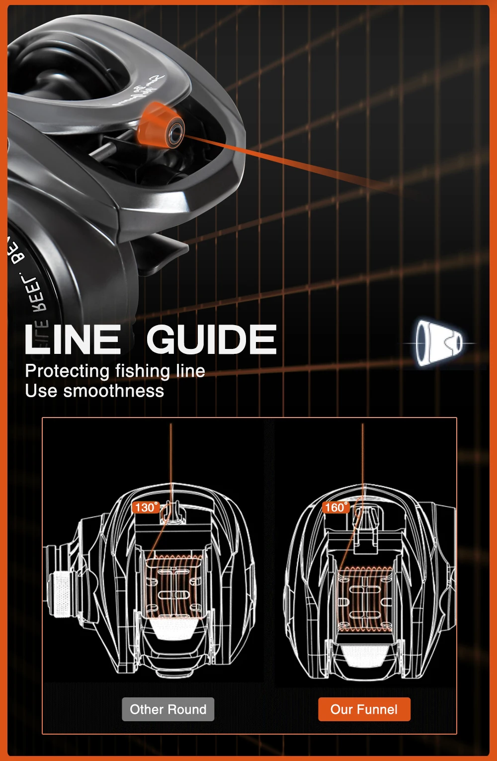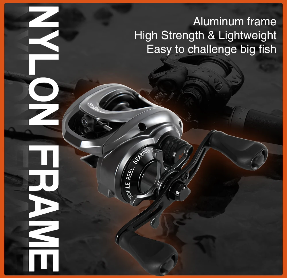 ● Ligero: con un peso de solo 149g/5,3 oz, el carrete HONGGUANG Baitcasting tiene un marco estrecho de nailon con fibra de vidrio que es ultraligero y ultrapotente. El carrete de pesca de bajo perfil de tamaño compacto está diseñado ergonómicamente para la comodidad.