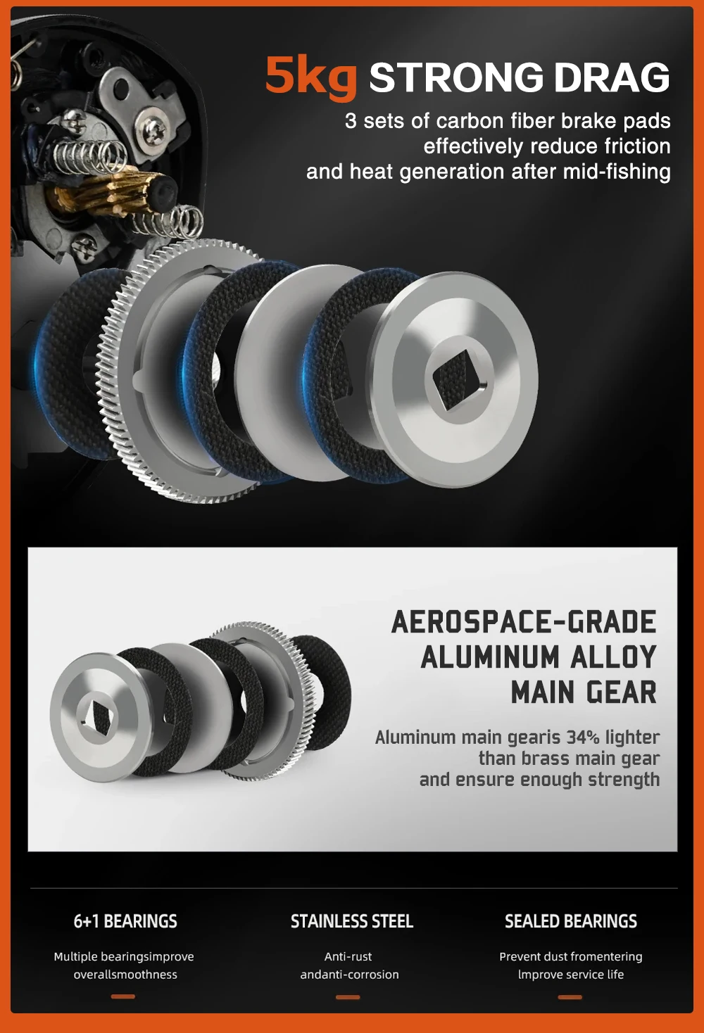 ● RENDIMIENTO SUAVE-6 rodamientos de bolas de acero inoxidable de doble blindaje + 1 rodamiento anti-retroceso para un rendimiento suave y confiable. Engranajes principales y de piñón de latón y sistema de frenado de 8 imanes con ajuste exterior hacen el trabajo con el mínimo esfuerzo.