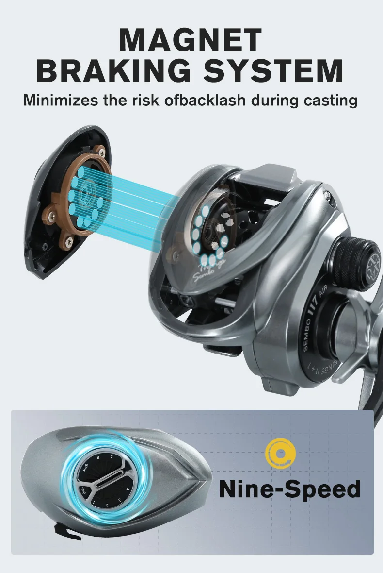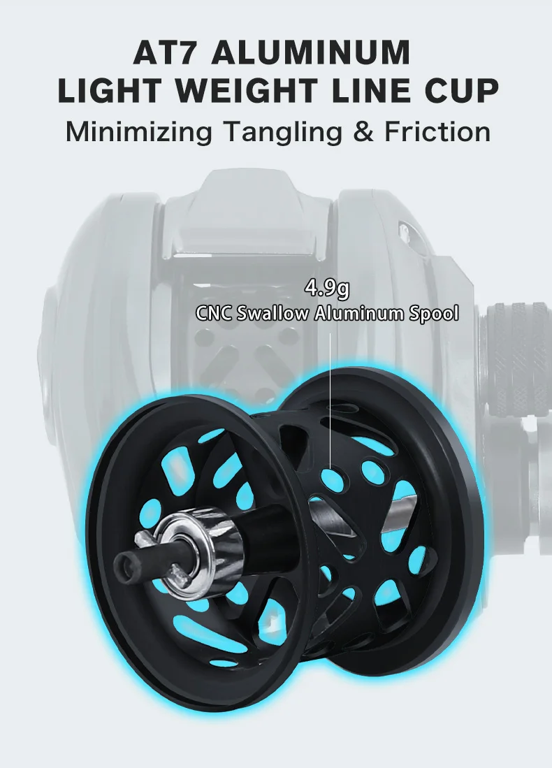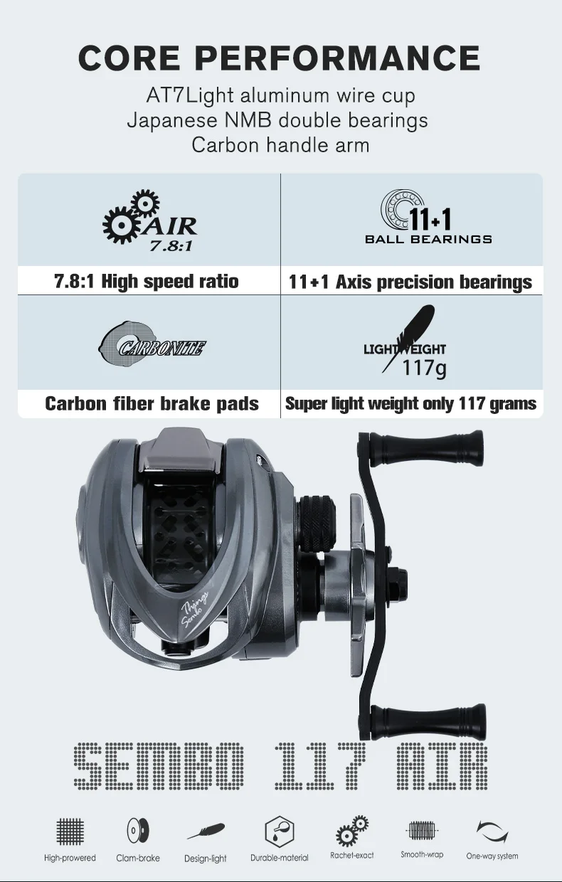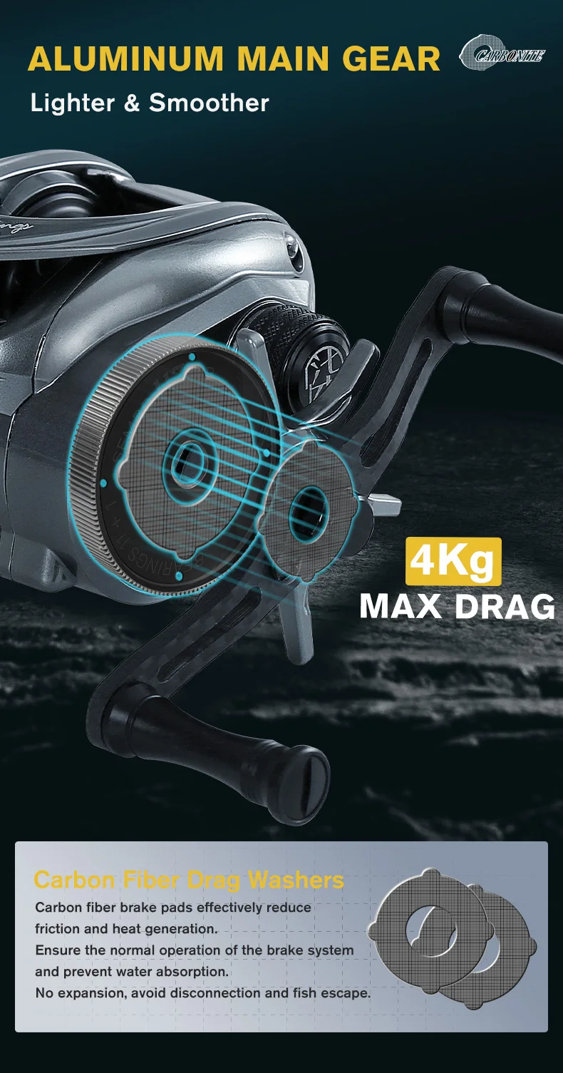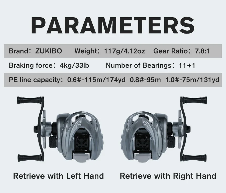1. Excelente durabilidad y ultraligero: Marco de carbono ZUKIBO 117 con engranaje principal de aluminio importado de Alemania, no es fácil de oxidar, garantizamos una excelente durabilidad con una mano, Y se esfuerza por reducir el peso del carrete a 117g con un carrete estándar de 4,9G, con una sensación de lanzamiento extremadamente cómoda. El Tamaño del carrete de Baitcasting ZUKIBO es pequeño, puede sostenerlo fácilmente, llevarlo en su viaje de pesca, que nunca será su carga