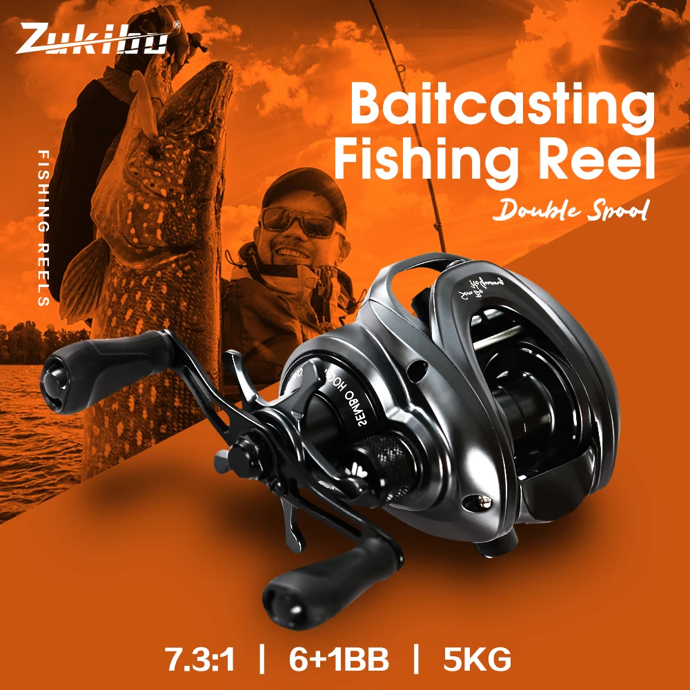 Carretes de pesca ZUKIBO HONGGUANG, carrete de baitcasting, carrete de cebo de freno magnético, 5KG Max 6 + 1 BB Drag, carrete Baitcaster de agua salada
