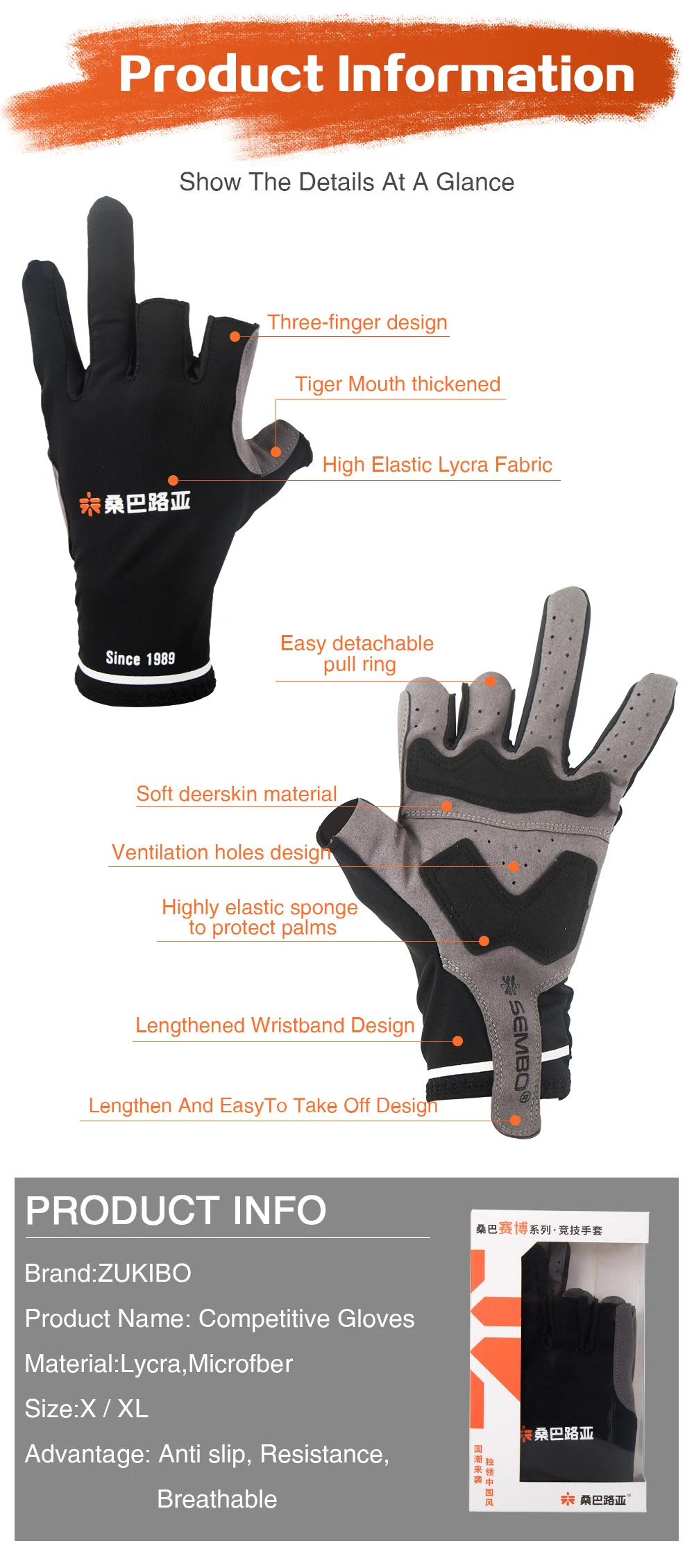 ZUKIBO Three Finger Fishing Gloves Women Men Cut Gloves for Fishing Sun Protection Anti-Slip Gloves Breathable Thin Gloves