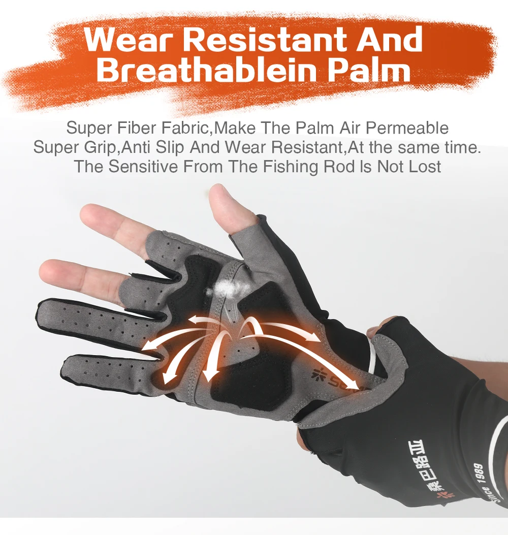ZUKIBO-guantes de pesca universales para hombre y mujer, ropa deportiva transpirable de tres dedos para exteriores, medio dedo