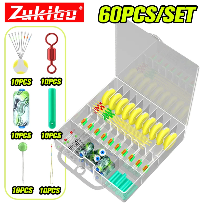 ZUKIBO Fishing Kit Float Space Bean Set Connector Fishing Line Carp Fishing Accessory Oval Stopper Fishing Bobber Fishing Tackle