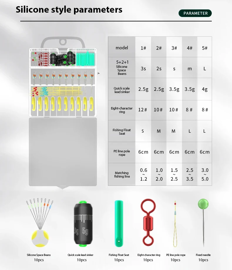 ②This comprehensive kit includes silicone space beans and an 8-shaped ring space bean combo for versatile fishing applications.