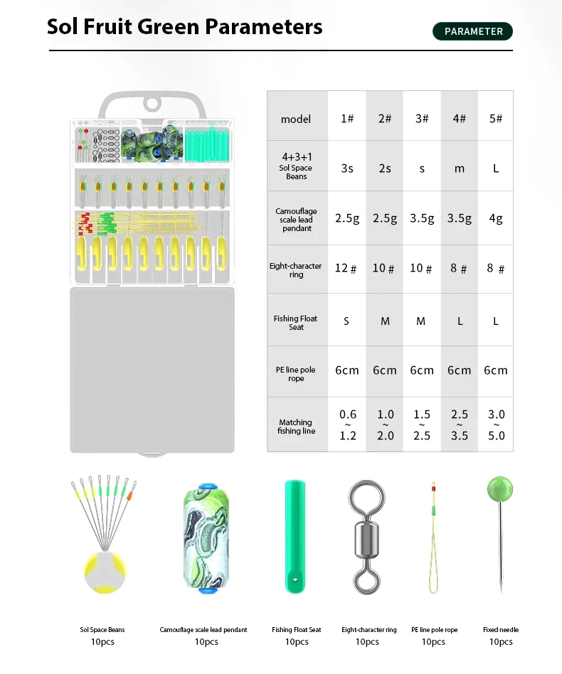 ①Upgrade your fishing gear with our boxed space bean 10-set kit.