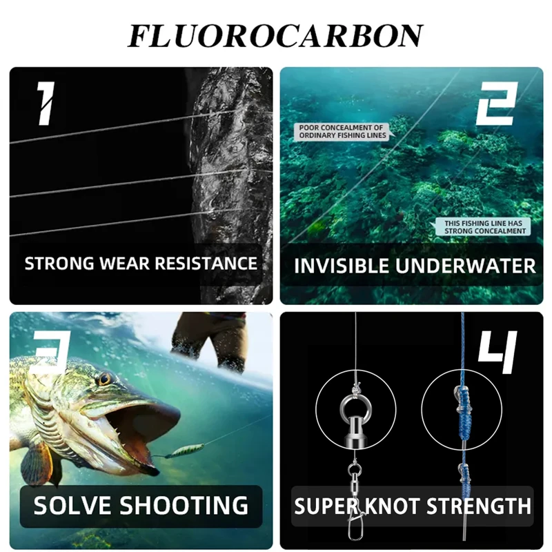 4. Los materiales únicos de fluorocarbono hacen que la línea sea extremadamente duradera, ofrecen una gran resistencia al nudo.