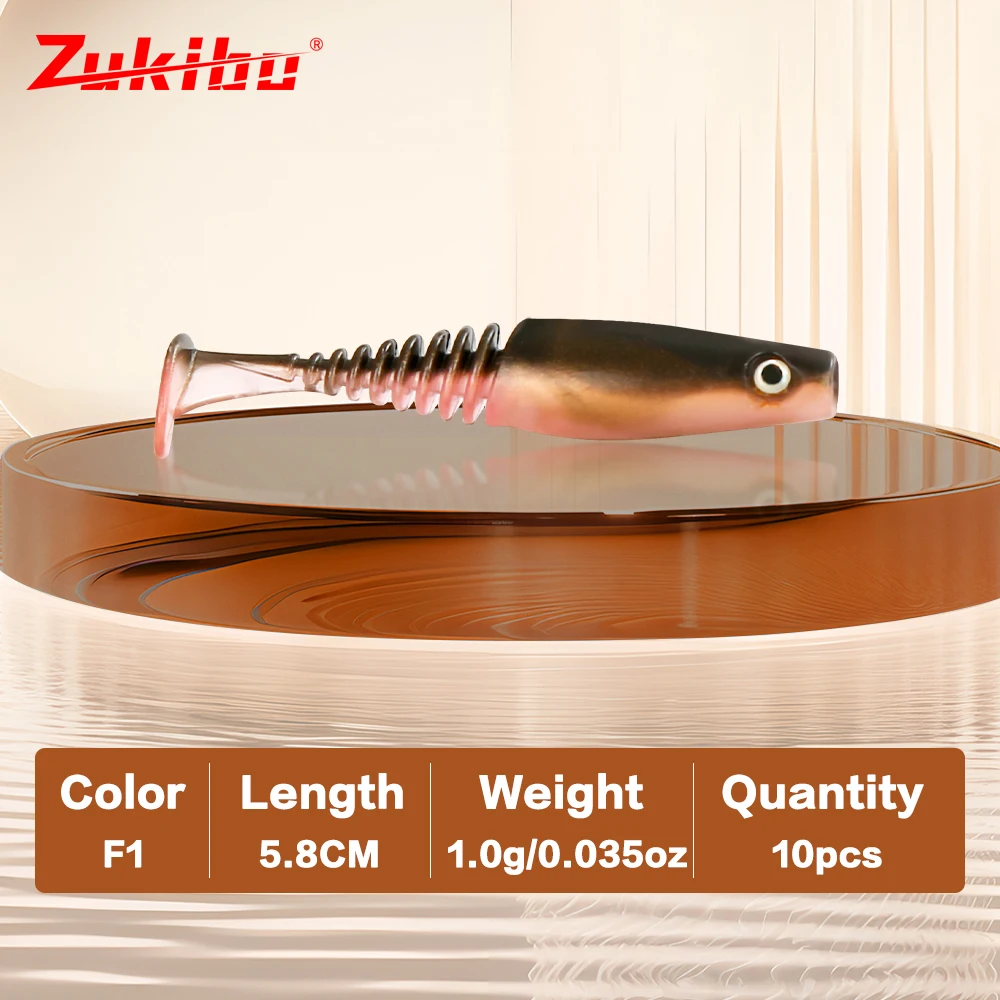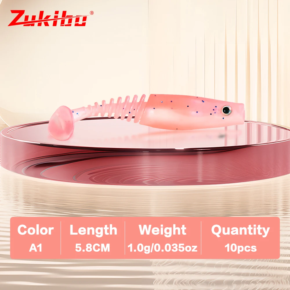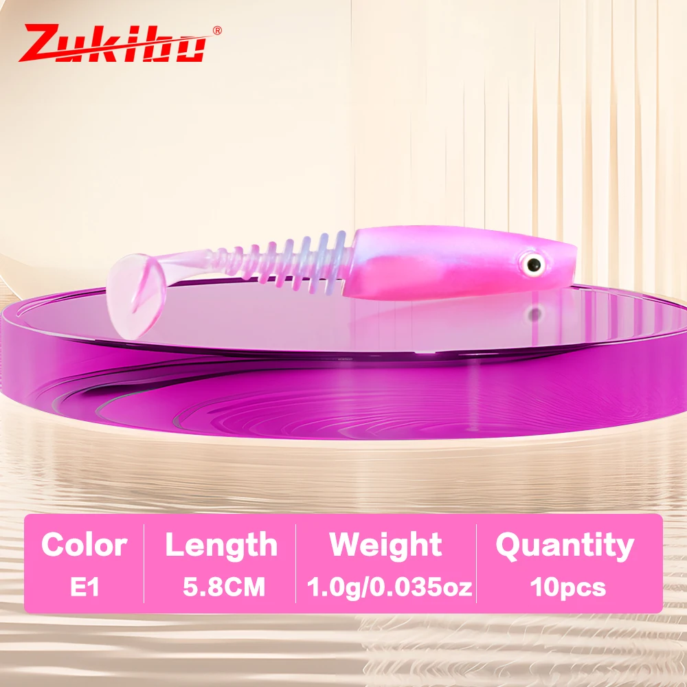 ZUKIBO, nuevo diseño, hilo de cavidad, cola en T, señuelos de hundimiento suaves con hisopos de algodón y cuentas de anillo, 68mm, 58mm, 10 Uds., señuelo de cebo de ojos 3D