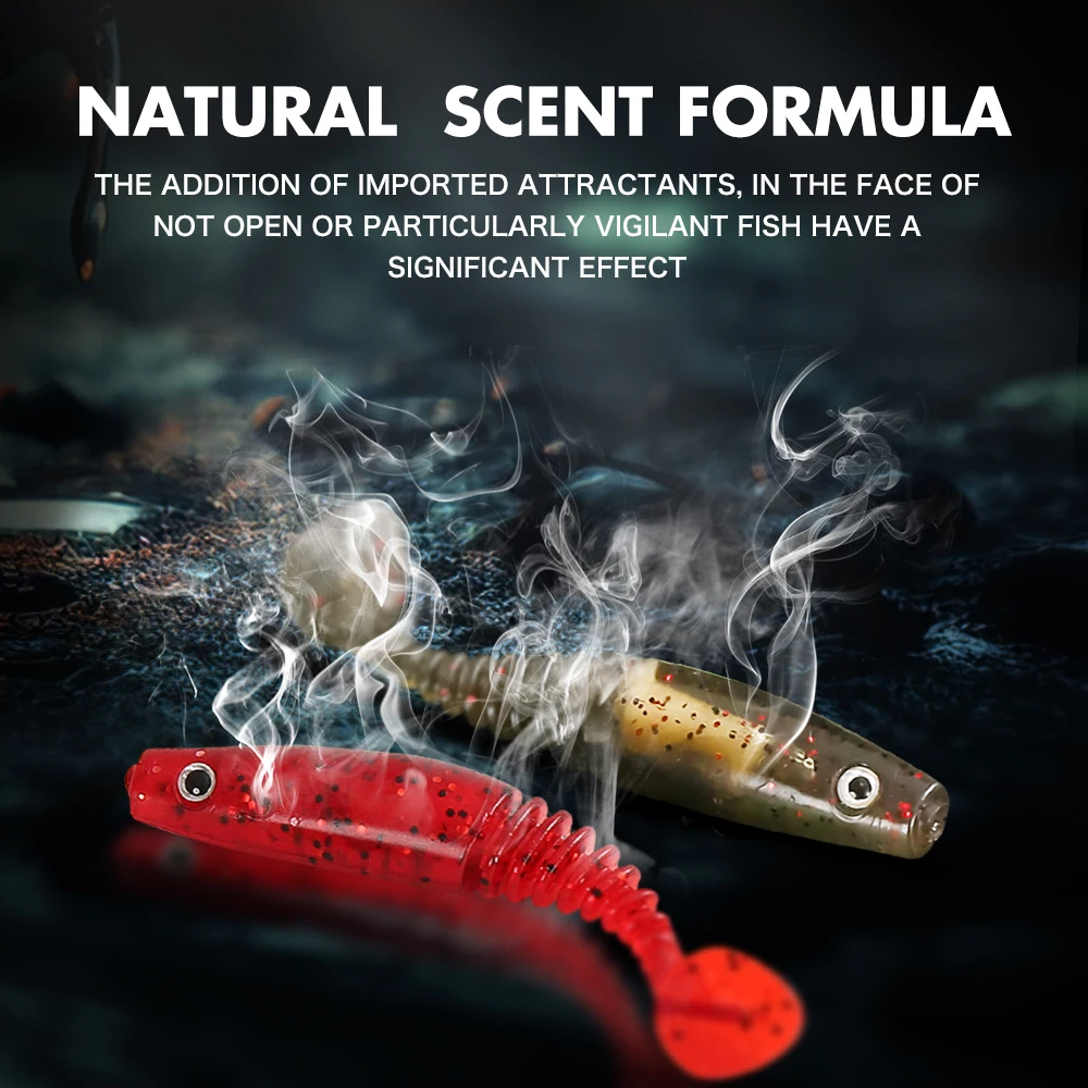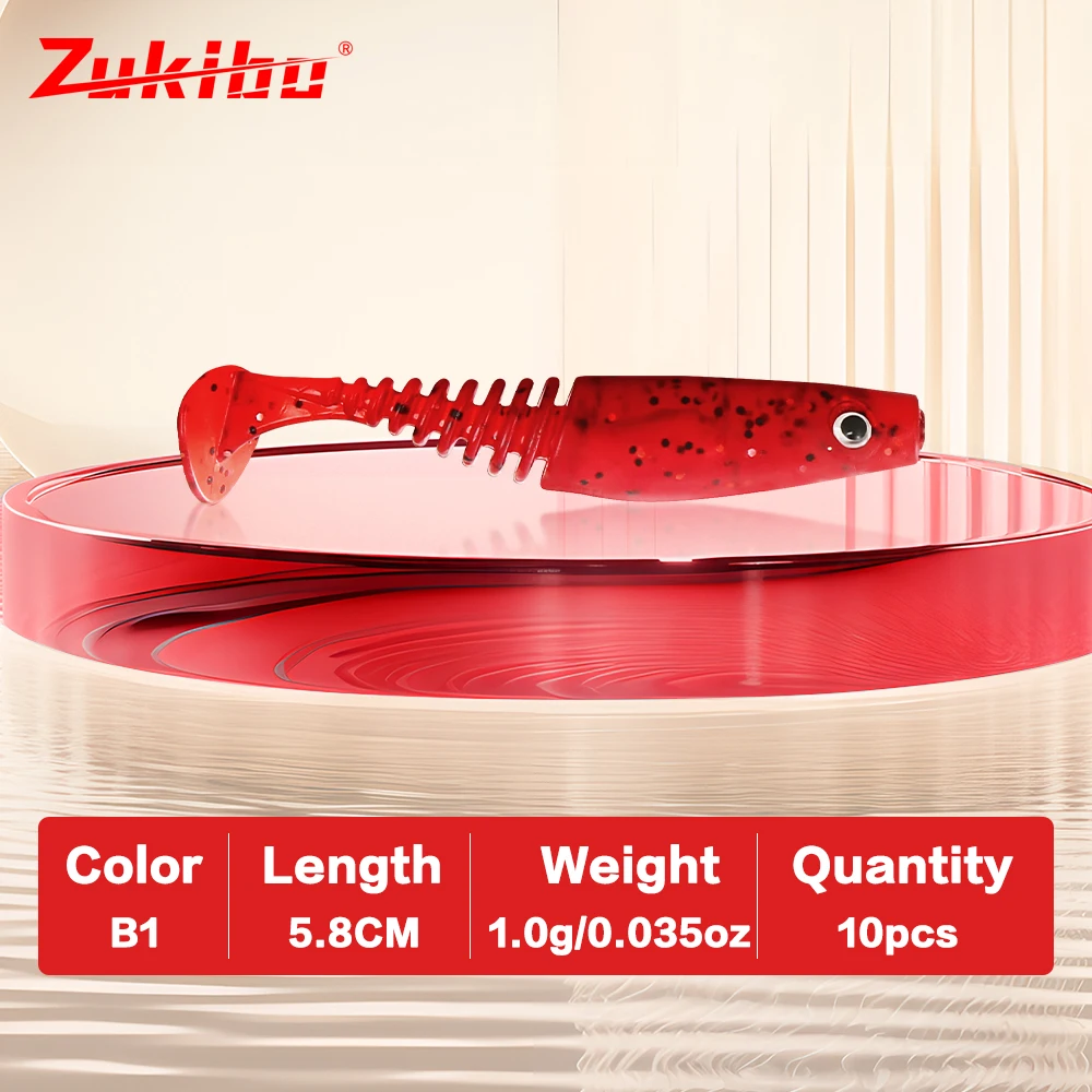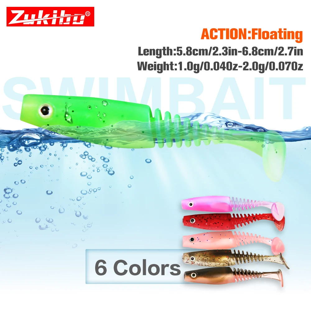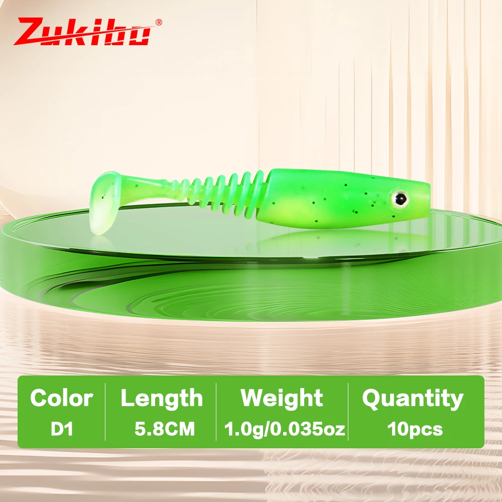 ZUKIBO, nuevo diseño, hilo de cavidad, cola en T, señuelos de hundimiento suaves con hisopos de algodón y cuentas de anillo, 68mm, 58mm, 10 Uds., señuelo de cebo de ojos 3D