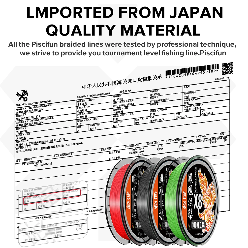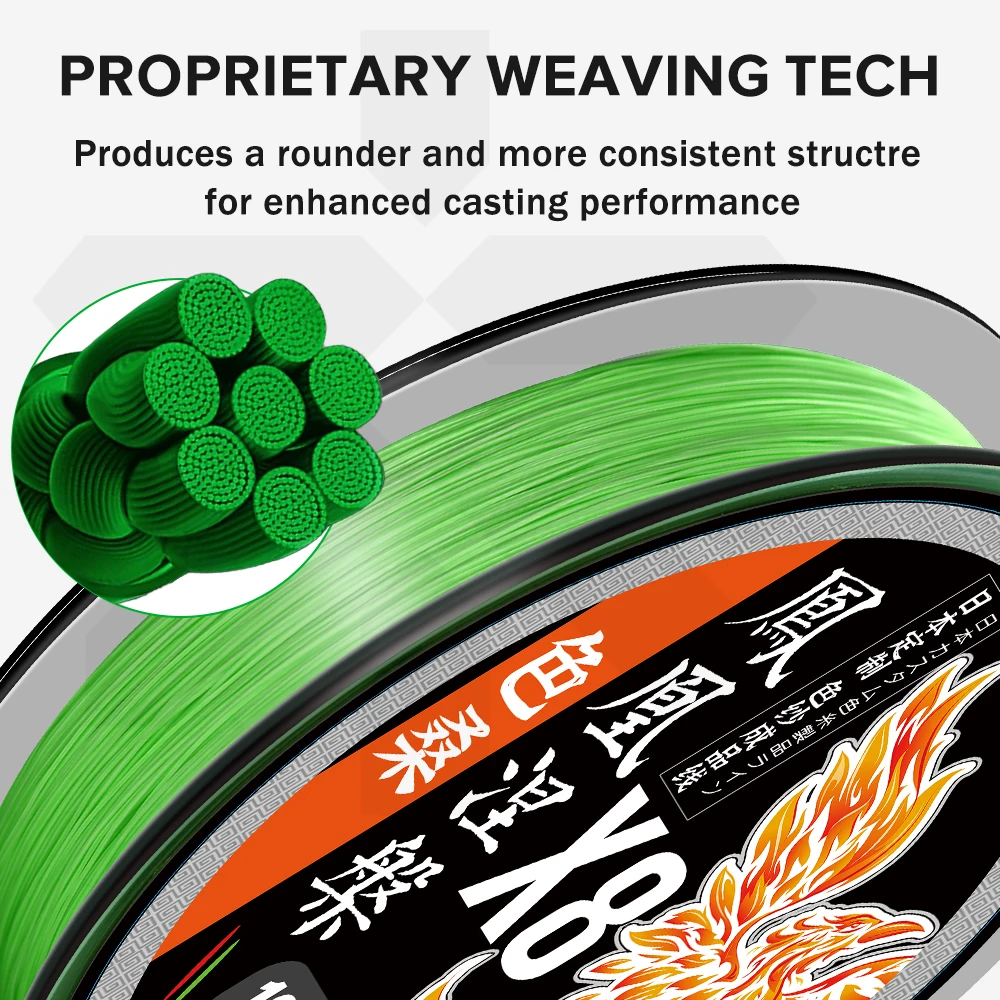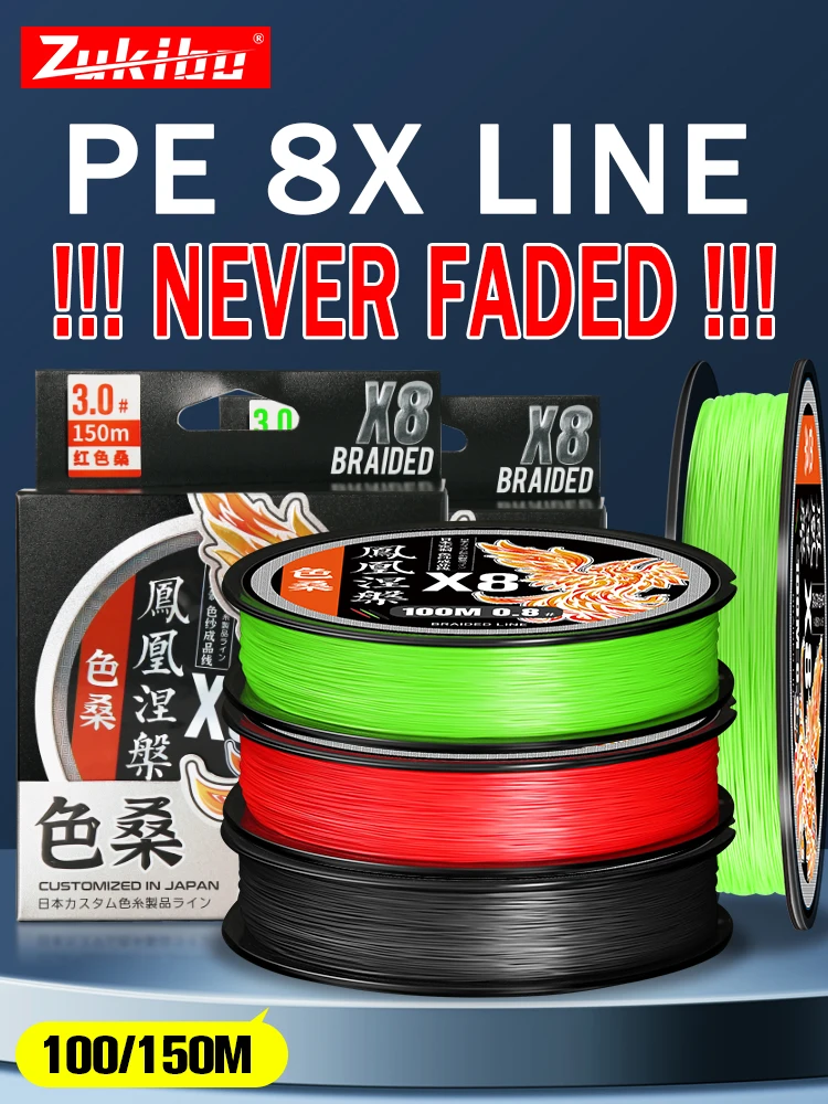 ZUKIBO Phoenix Línea de pesca trenzada de PE de 8 hebras nunca se desvanece Japón Línea de pesca multifilamento suave para aparejos de pesca de carpa