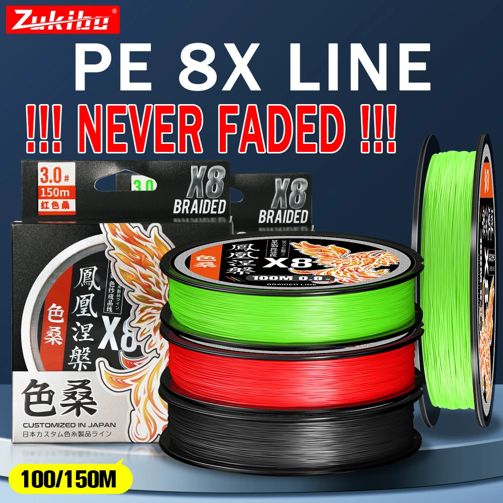 ZUKIBO Phoenix Línea de pesca trenzada de PE de 8 hebras nunca se desvanece Japón Línea de pesca multifilamento suave para aparejos de pesca de carpa