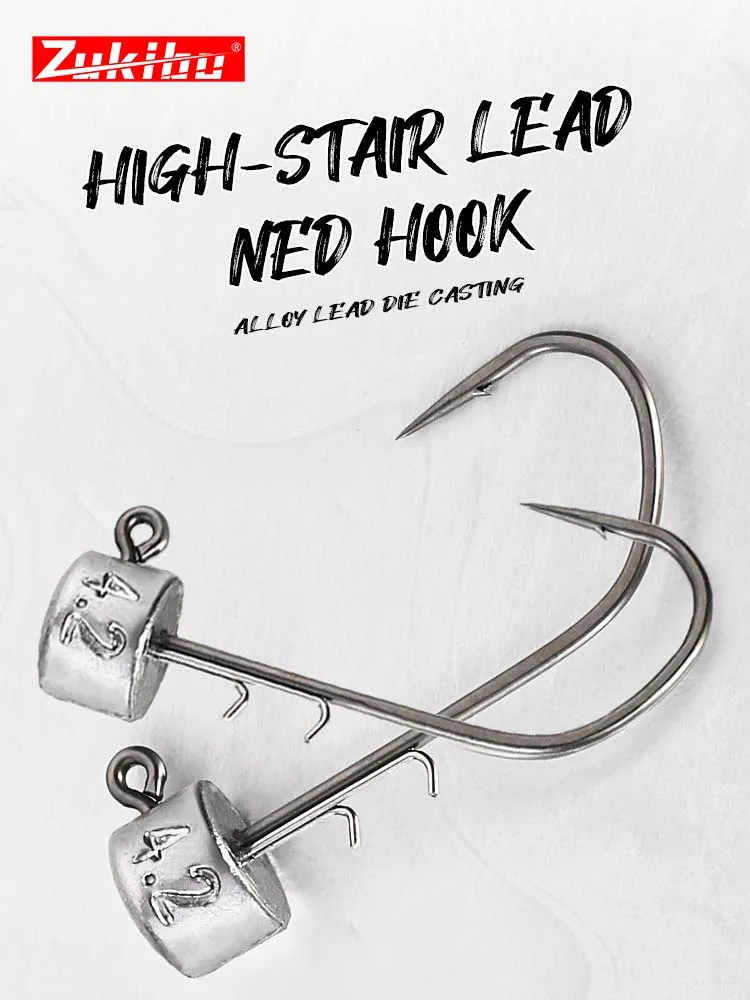 ZUKIBO ProTeflon Ned Jig Heads10 Uds ganchos para setas anzuelos afilados de doble púas para gusanos blandos lubina trucha Rockfish aparejos perca
