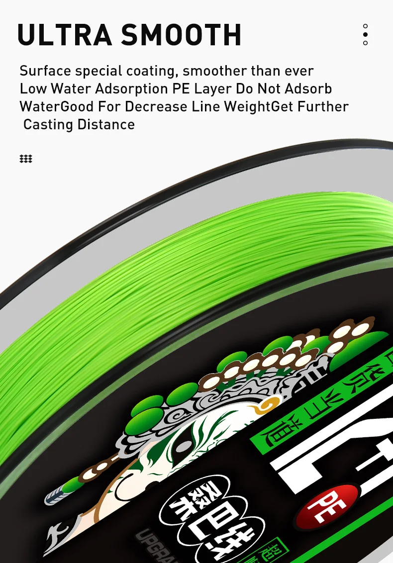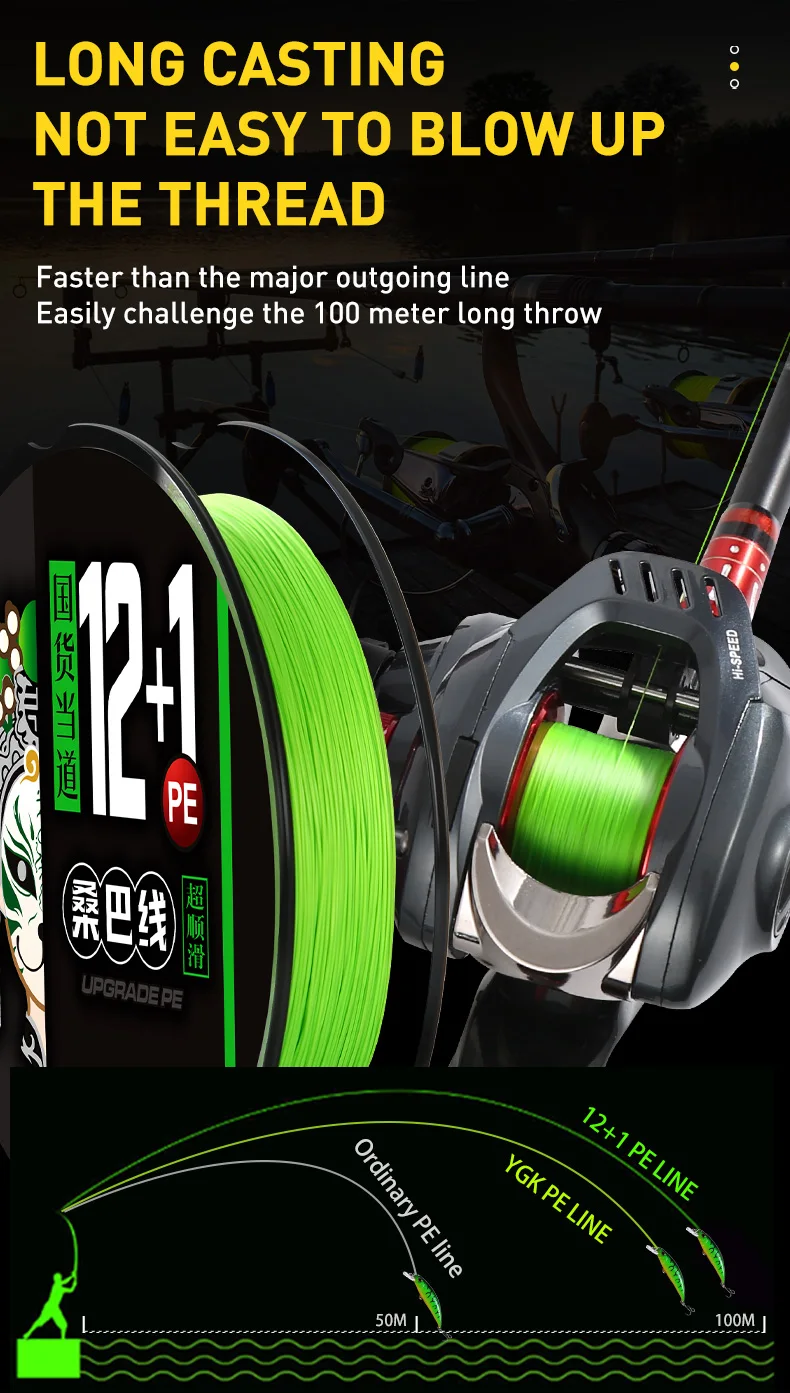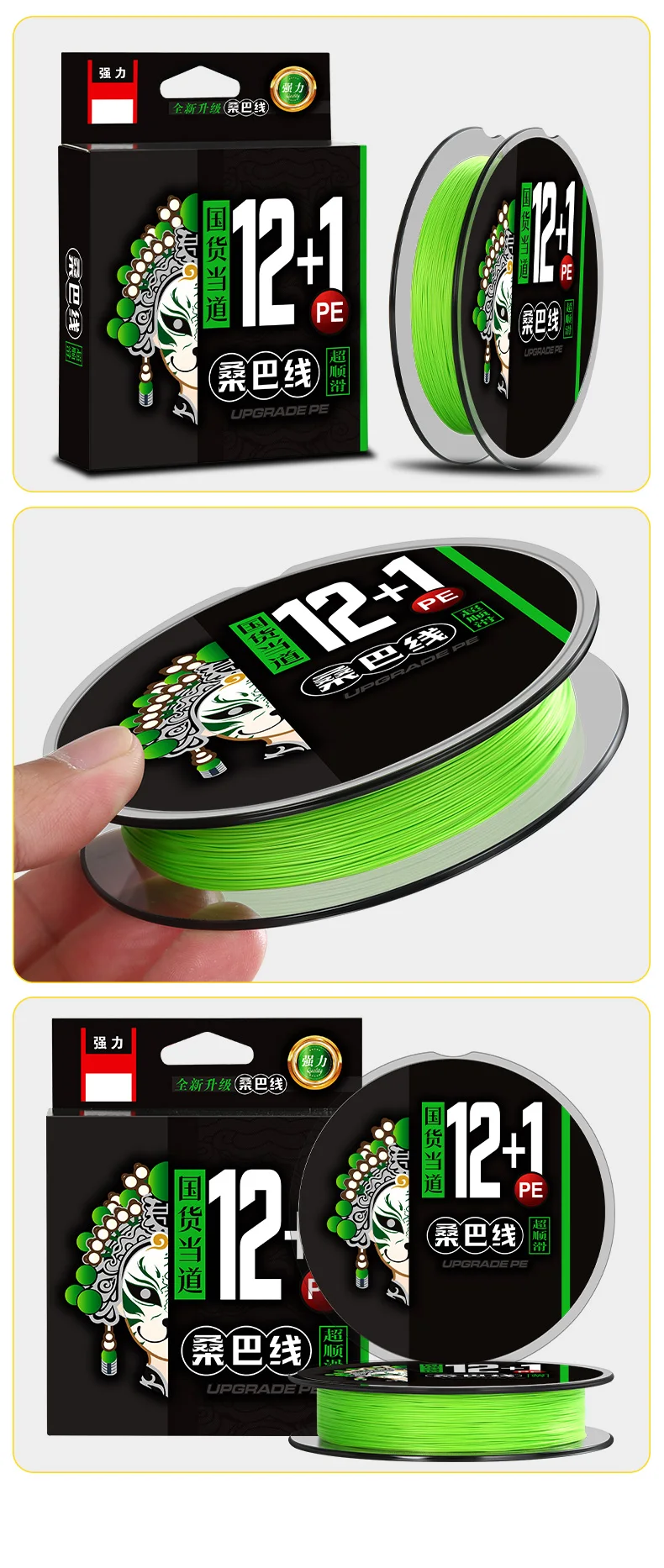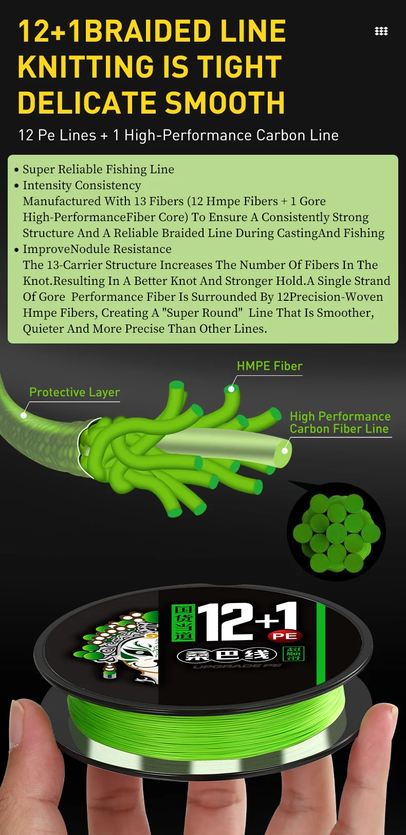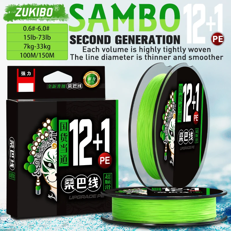 -La línea trenzada ZUKIBO SAMBO 12 + 1 está hecha con fibras 100% UHMPE de ultra alto peso molecular que tienen una relación fuerza-peso que es 10 veces más fuerte que el acero. La construcción de 13 hilos produce una trenza más suave para ofrecer moldes largos y silenciosos y tiene cero memoria y casi cero estiramiento.