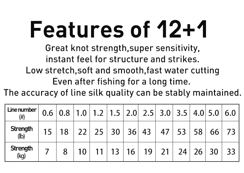 -Las líneas de pesca SAMBO 12 + 1 son 75% más pequeñas en diámetro que una línea de monofilamento de prueba de Libras similar. Este diámetro súper Delgado le brinda la ventaja de un diámetro delgado para técnicas, pero con mayor resistencia, capacidad de línea y resistencia a la abrasión. SAMBO 12 + 1 trenza es una gran línea de pesca de fundición para usar como una línea trenzada de agua salada o línea de pesca de surf.