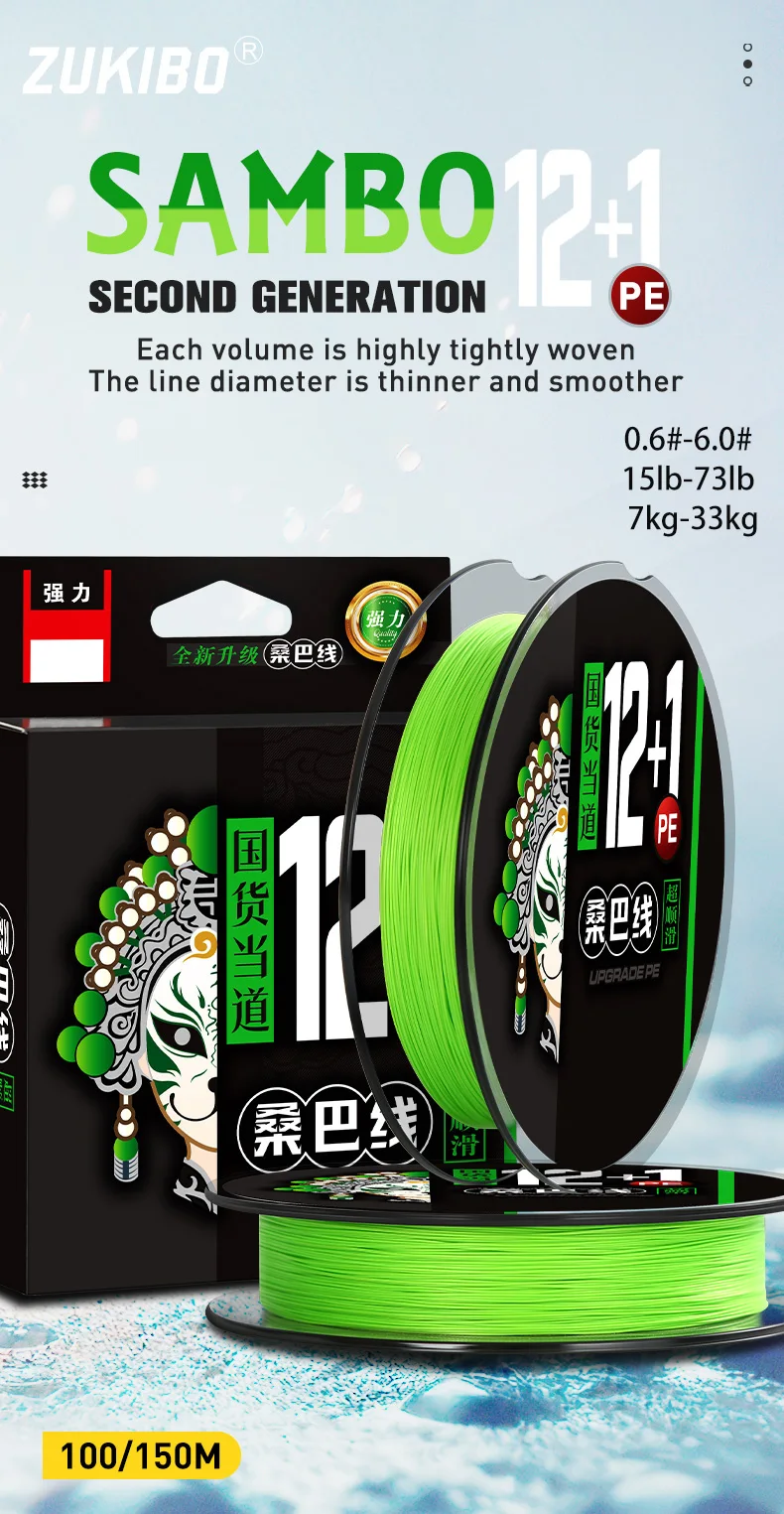 ZUKIBO SAMBO 12 + 1 hilos hilo de pescar trenzado extremadamente fino y suave resistente a la abrasión línea trenzada para agua salada agua dulce