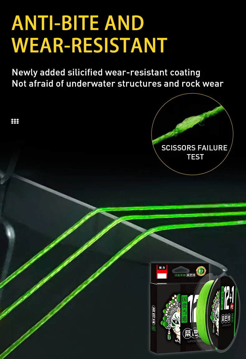 -La línea trenzada SAMBO 12 + 1 es la mejor línea trenzada de pesca disponible, es increíblemente fuerte y resistente a la abrasión. Puedes pescar esta línea alrededor de rocas, árboles y otras estructuras con total confianza. Su gravedad específica de. 97 es más ligera que el agua, lo que le permite flotar cuando es necesario.
