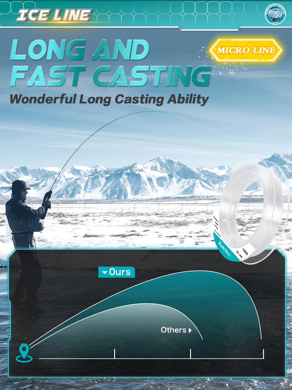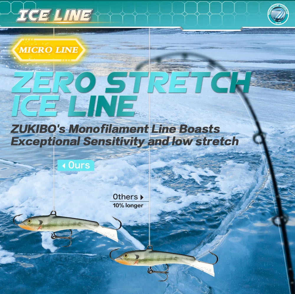 1.ZUKBO Ice Fishing Mono Line funciona bien a bajas temperaturas.Está diseñado para pescar en hielo a varias profundidades.Este material ofrece mayor resistencia a la nueva línea manteniendo su suavidad y elasticidad.