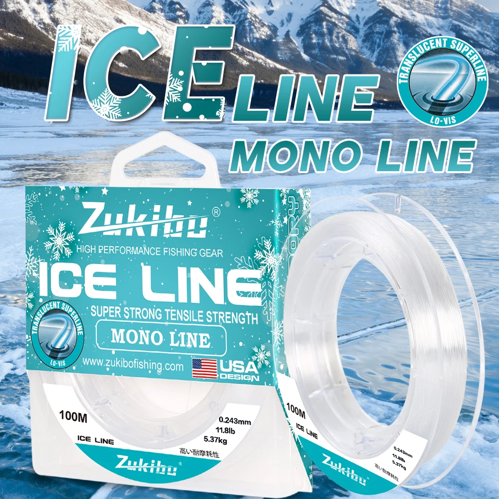 ZUKIBO 100M Ice Mono Line Japón Línea de pesca de alto rendimiento Super sensible y fuerte resistencia a la tracción Línea de nailon de baja memoria
