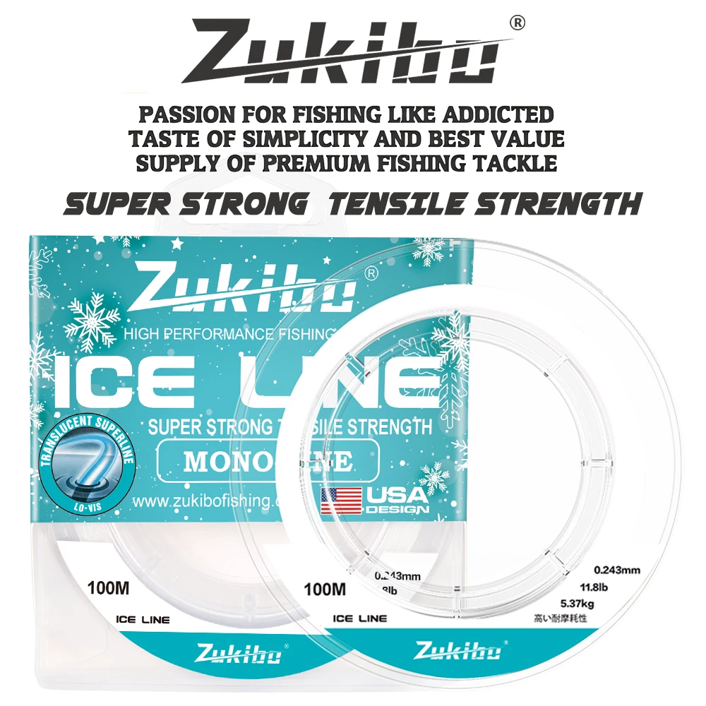 1.ZUKBO Ice Fishing Mono Line performs well at low temps. It's designed for ice fishing at various depths. This material offers higher strength to the new line while keeping its softness and elasticity.
