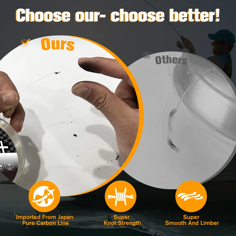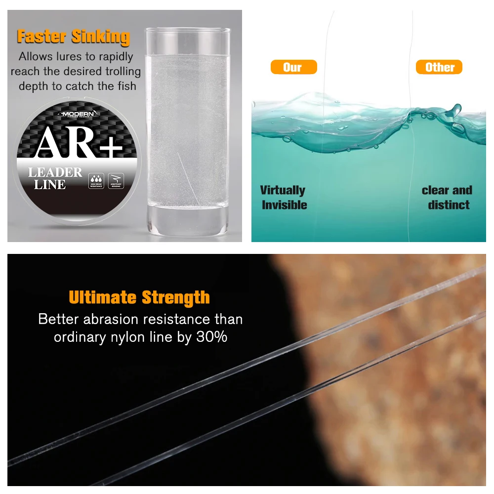 2. 【Resistencia a la abrasión premium】La resistencia a la abrasión de la línea líder de fluorocarbono ZUKIBO es increíble. Puede adaptarse a diferentes situaciones de pesca sin importar el agua dulce o salada y es especialmente útil para peces con dientes afilados. Esta línea líder tiene un 15% más resistencia a la abrasión que otras líneas de fluorocarbono.