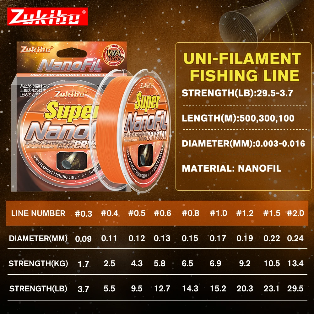 ZUKIBO-línea de pesca naranja de alta calidad, 100/200/300/500M, línea fina y suave para carretes giratorios, novedad de 2025.ZUKIBO Nanofil Uni-Filament: Beyond Mono & Braid7:Ideal para: pescadores que utilizan carretes giratorios que exigen lo máximo en distancia de lanzamiento, sensibilidad y tecnología de líneas de vanguardia.