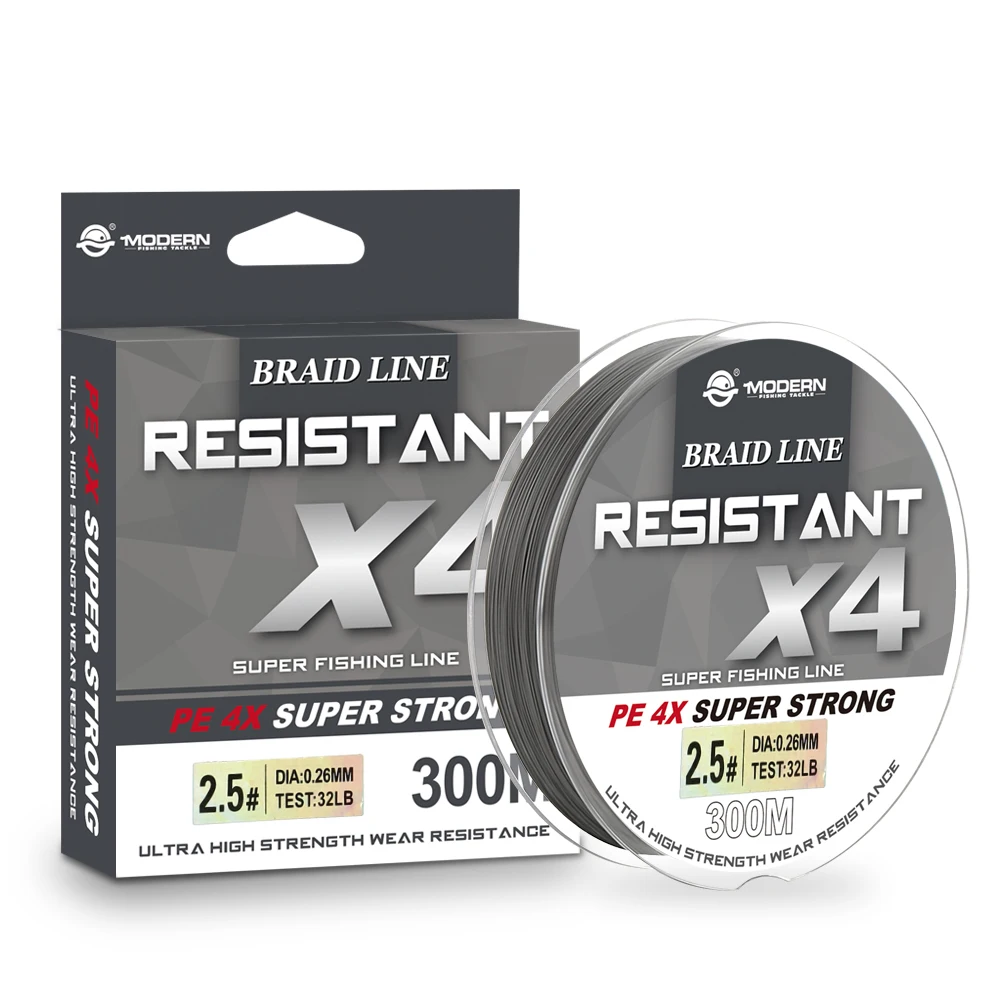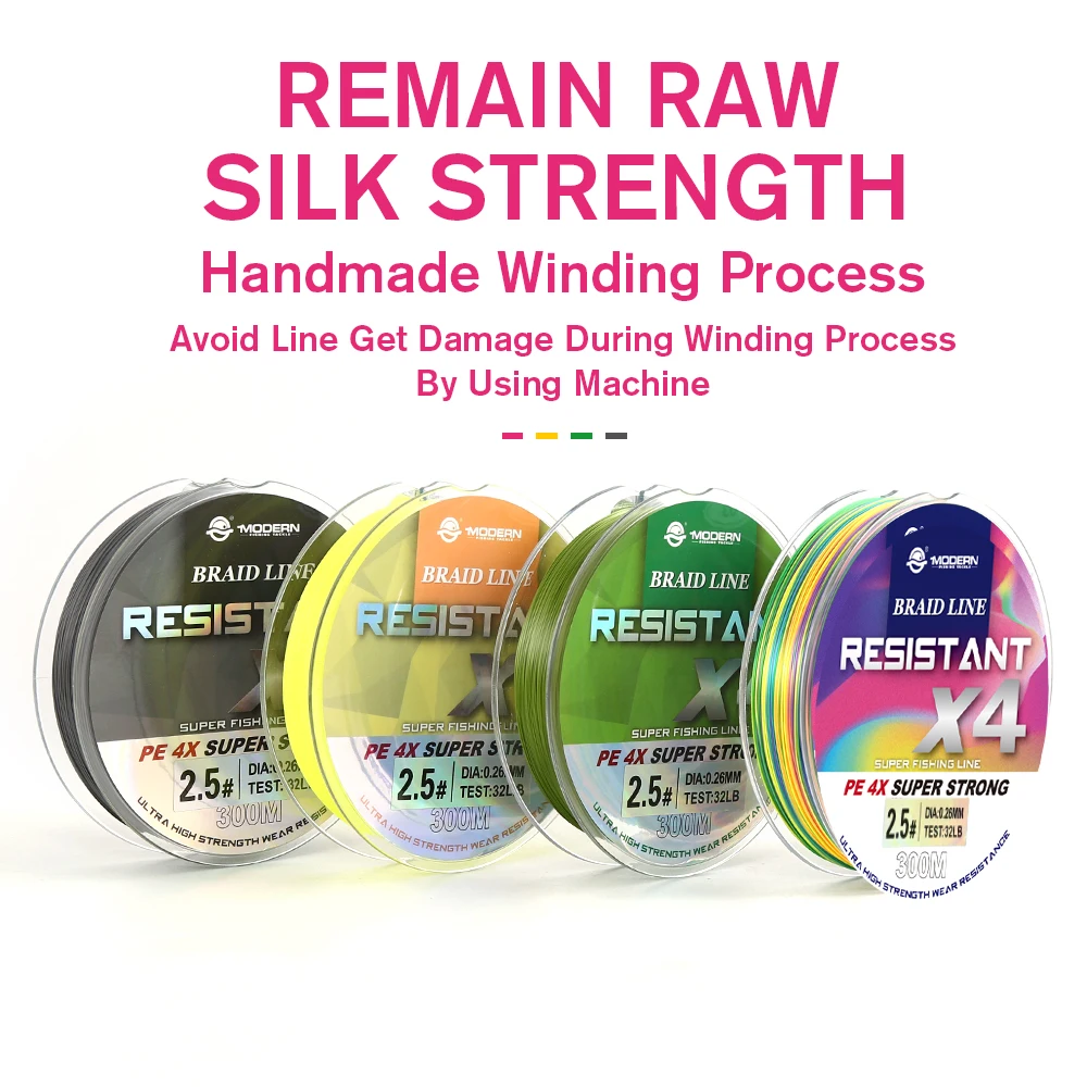 2.Línea de PE de 4 hebras, material de Japón, construcción trenzada única, hecha de fibras de PE de ultra alta resistencia.