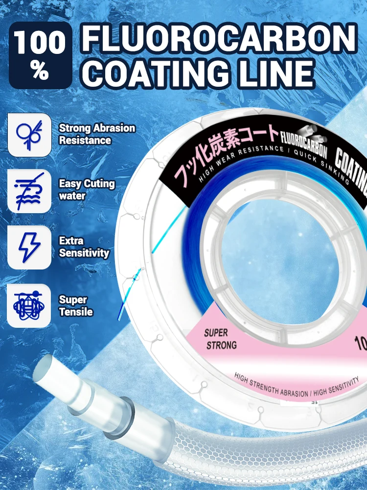 1•Línea líder de fluorocarbono: el hilo de pescar de fluorocarbono ZUKIBO es una combinación premium de fluorocarbono y copolímero, lo que lo hace prácticamente invisible en el agua.La invisibilidad puede aumentar la tasa de captura del pescador, especialmente en situaciones de agua clara.
