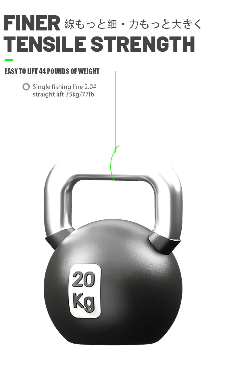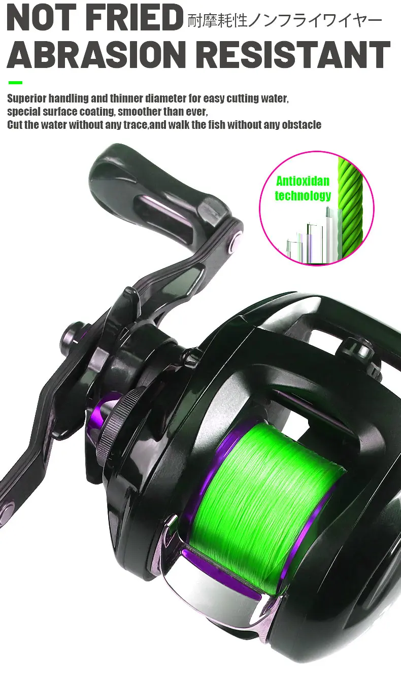 3. Usando tecnología de tejido avanzada y precisa y proceso de compresión y recubrimiento. tecnología entre pescadores. ¡Tiene una muy buena reputación entre los pescadores! Esta línea tiene un diámetro fino, alta resistencia, baja resistencia al viento y buena resistencia a la abrasión.