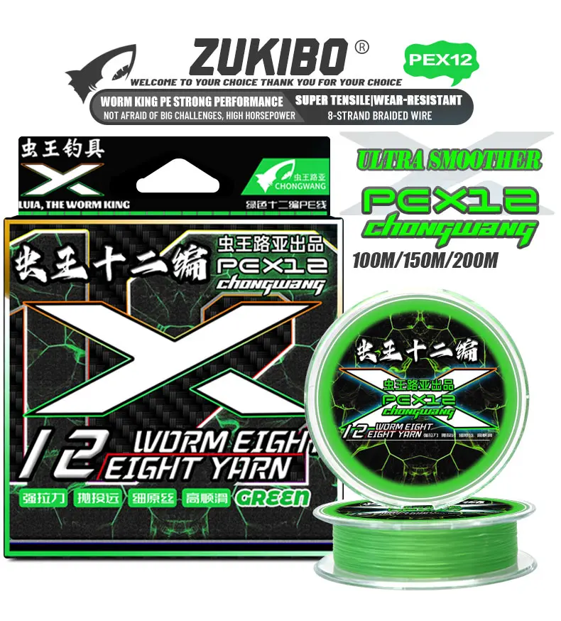 ZUKIBO nueva línea de pesca trenzada de 12 hebras de alta cantidad multifilamento LÍNEA DE PE verde súper fuerte X12 línea de pesca duradera suave