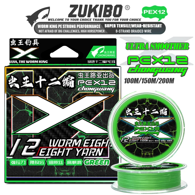 ZUKIBO nueva línea de pesca trenzada de 12 hebras de alta cantidad multifilamento LÍNEA DE PE verde súper fuerte X12 línea de pesca duradera suave