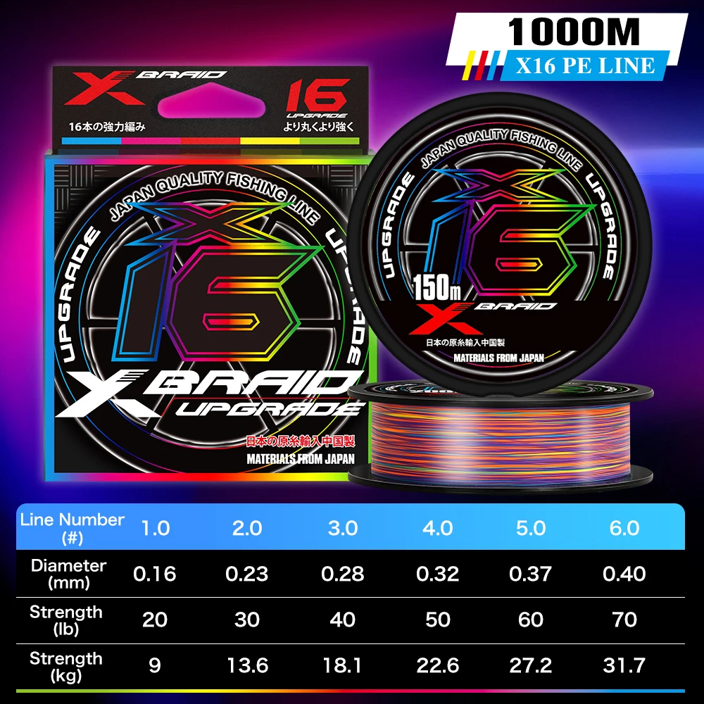 ZUKIBO 16 hebras LÍNEA DE Pesca trenzada X16 1000M 500M 300M 100M Japón PE línea para agua dulce agua salada accesorios de Pesca