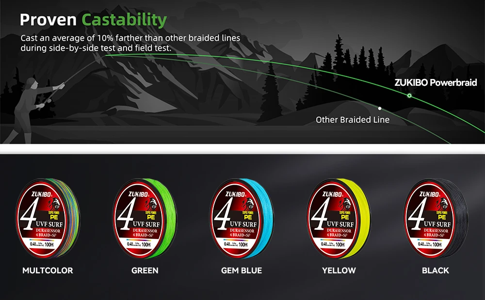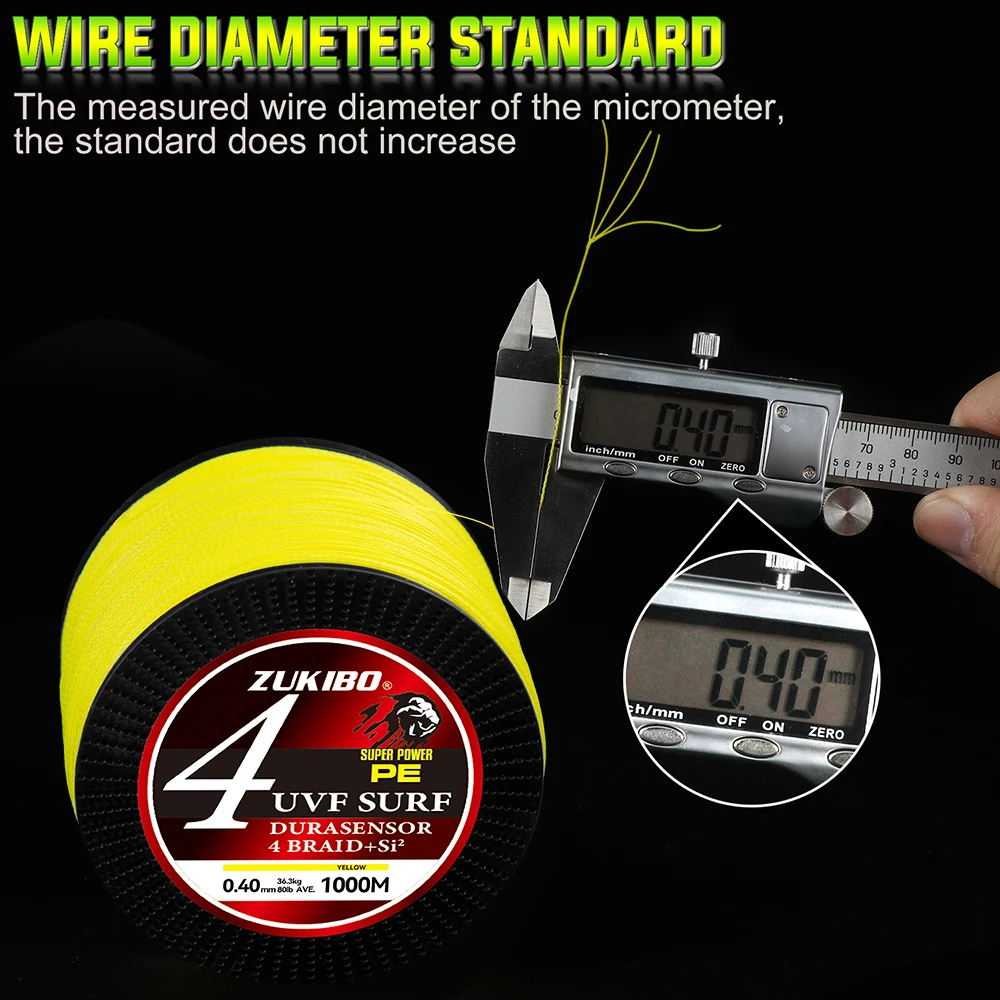 DIÁMETRO MÁS PEQUEÑO: las líneas de pesca trenzadas a menudo tienen de 1/3 a 1/4 el diámetro de las líneas de mono o fluorocarbono a una resistencia de rotura de prueba determinada. Por lo tanto, es fácil colocar una línea trenzada mucho más larga en un carrete que la línea de monofilamento o fluorocarbono para la misma resistencia. Esto es muy importante para la pesca en aguas profundas, ya que los carretes no tienen que ser muy grandes para acomodar las líneas largas. Además, las líneas trenzadas delgadas proporcionan menos resistencia a las corrientes marinas.