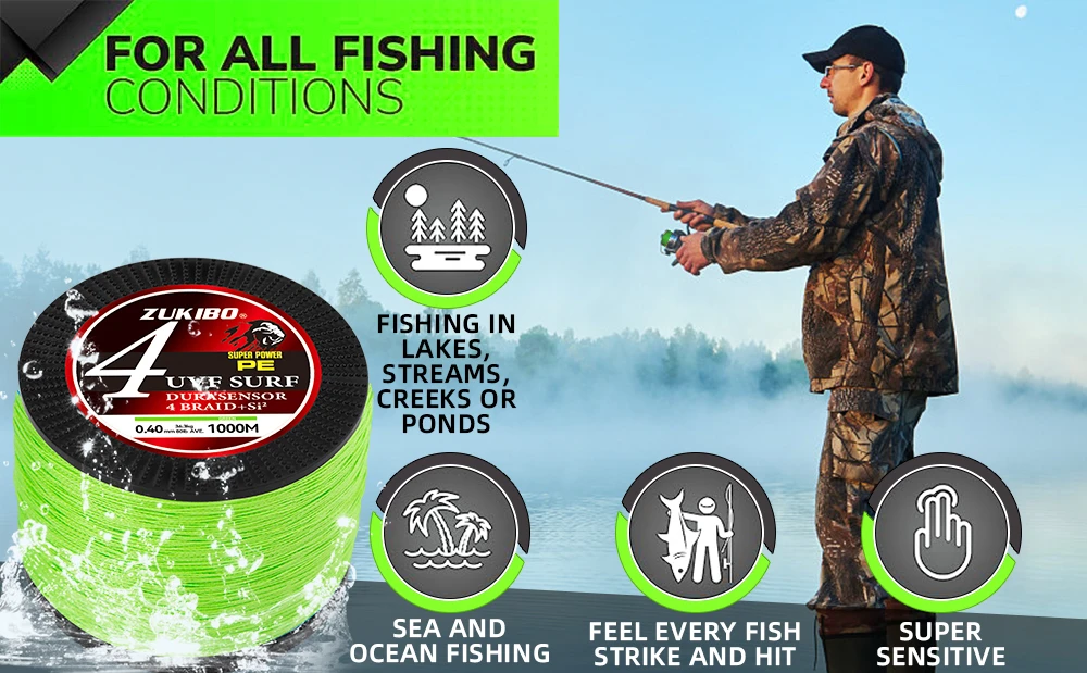 Estiramiento cero y sensibilidad extrema: las líneas trenzadas tienen muy poco estiramiento, lo que hace que los aparejos de pesca sean muy sensibles a las picaduras de peces. Esto es muy importante tanto para la pesca en aguas profundas como cuando se trata de peces con una mordida suave. Su potencia de ajuste de anzuelos aumenta drásticamente, lo que le brinda mayores porcentajes de relación de enganche y pesca desembarcada.
