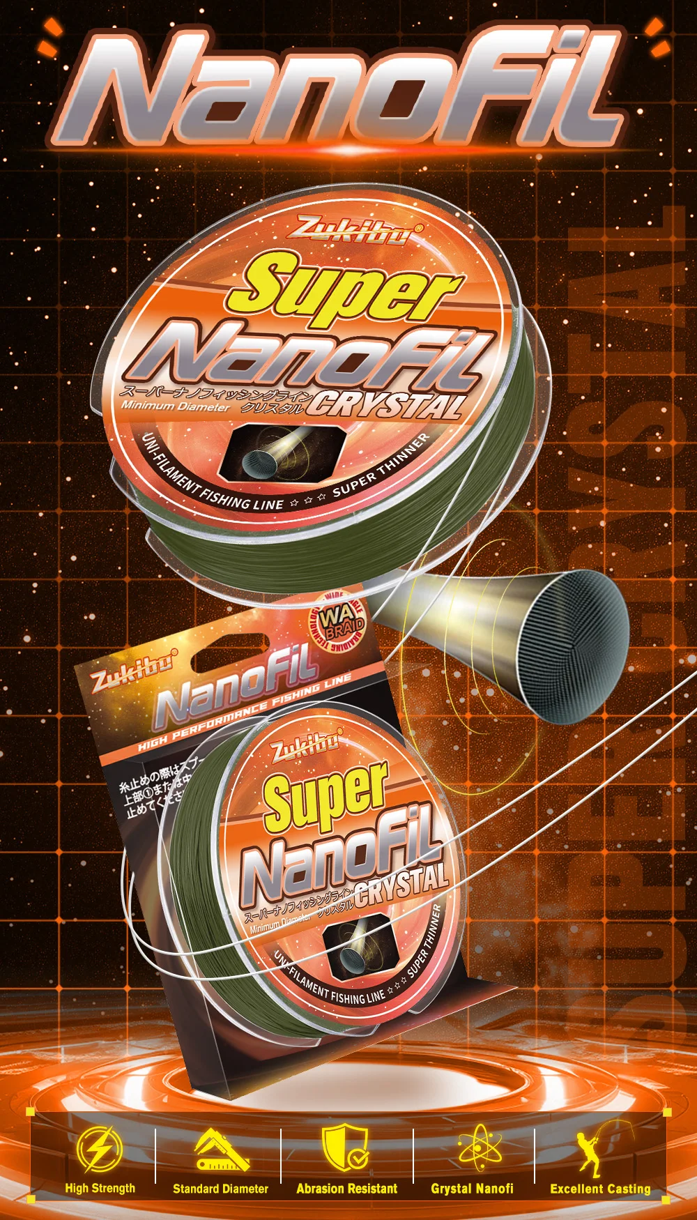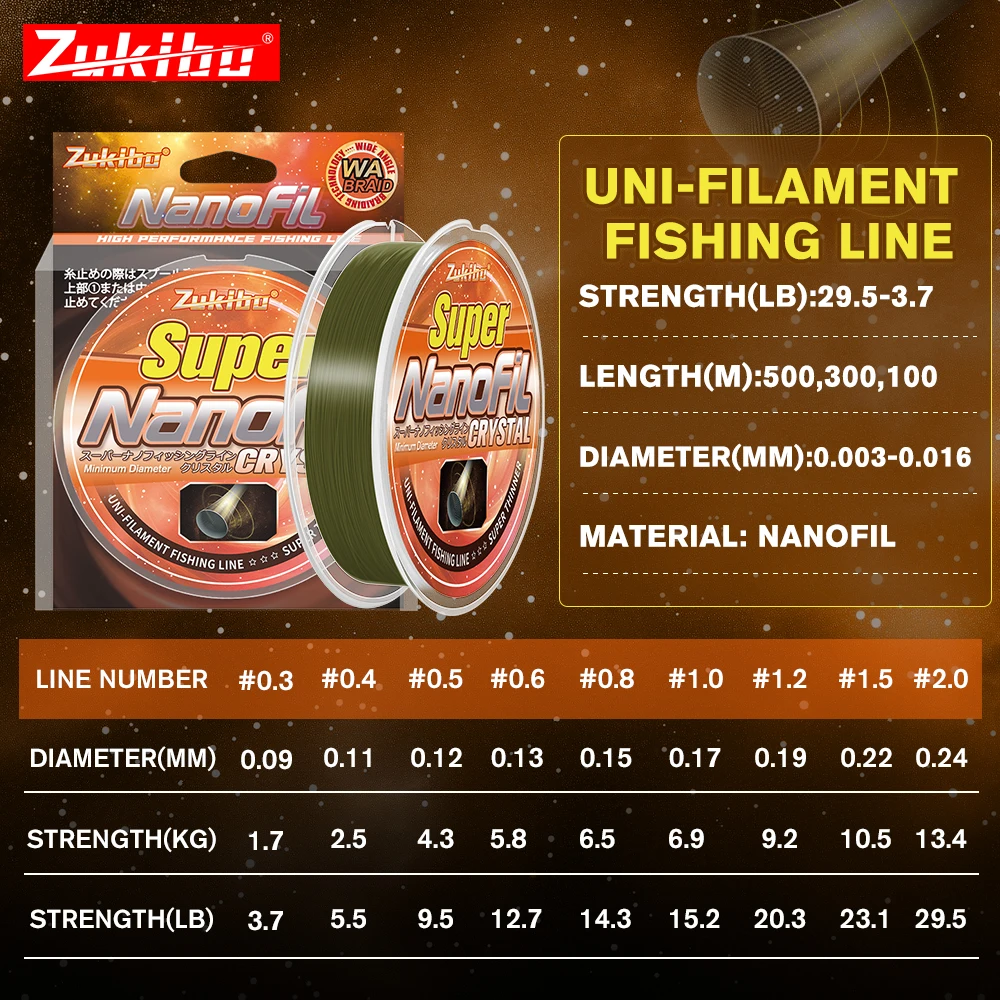 ZUKIBO Nanofil Uni-Filament: Beyond Mono & Braid7:Ideal para: pescadores que utilizan carretes giratorios que exigen lo máximo en distancia de lanzamiento, sensibilidad y tecnología de líneas de vanguardia.