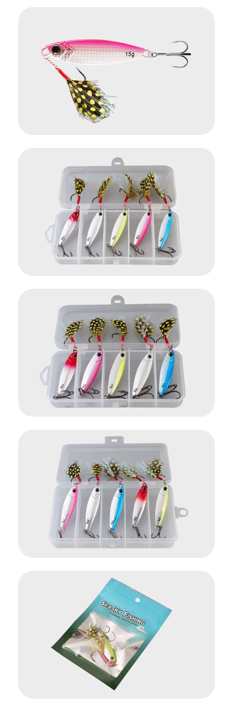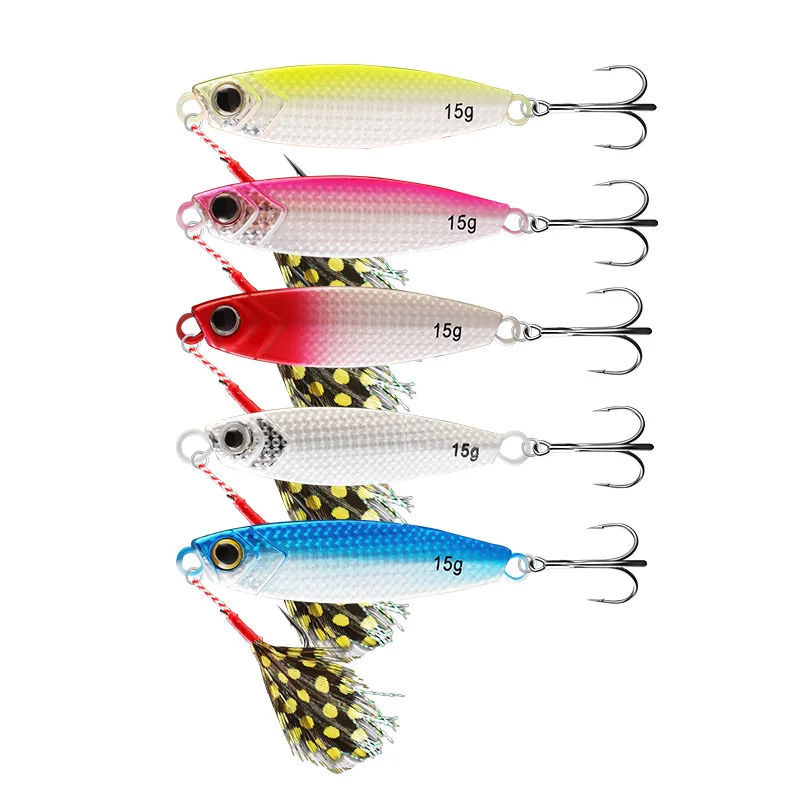 ZUKIBO-señuelo de Metal fundido para pesca, cebo Artificial de 5 piezas, 10G, 15G, 20G, fundición a tierra, Jigging, lubina de mar