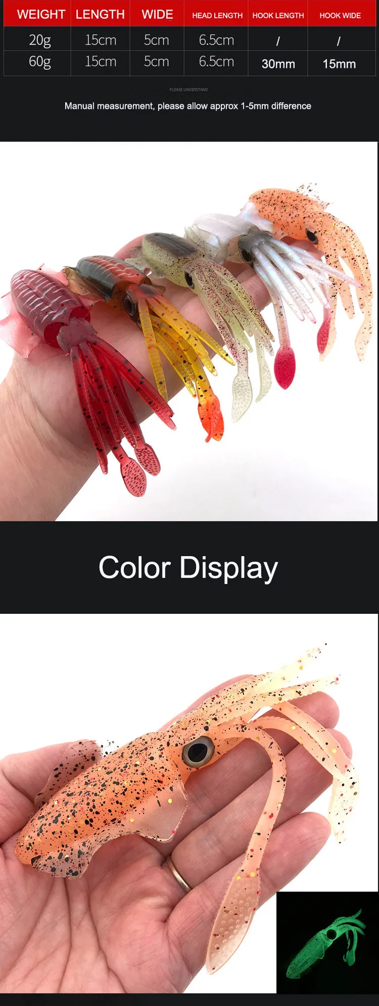 ZUKIBO Señuelo de pesca suave de calamar 2g 7g 15g 20g 60g señuelo de pulpo cebo Artificial luminoso de silicona Wobblers para Lucio Bass Truta