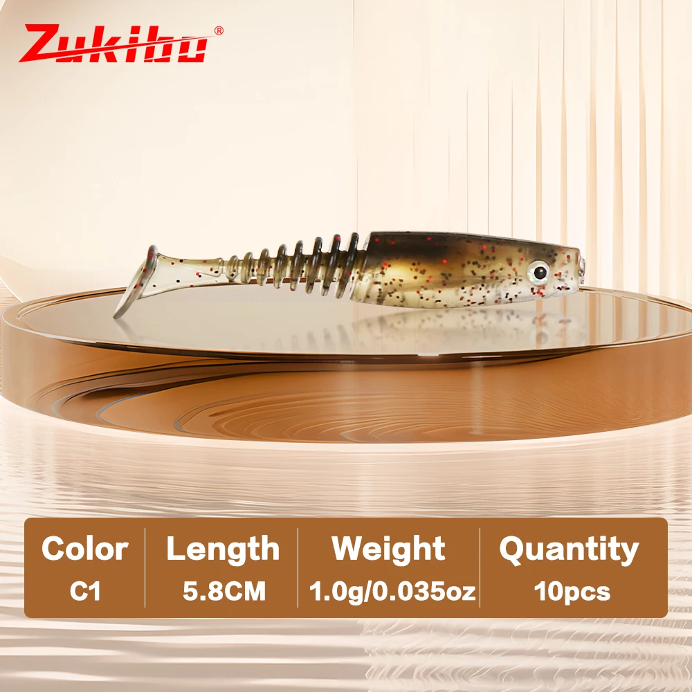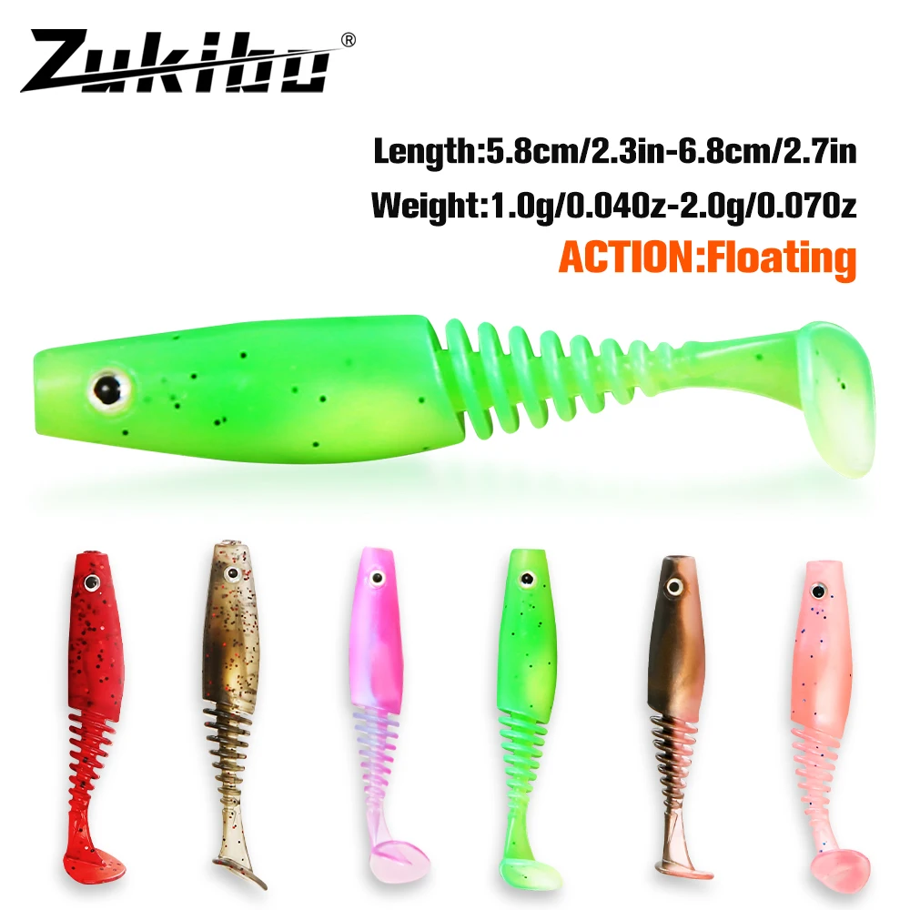 ZUKIBO Señuelo de pesca Swimbait suave 68 mm 58 mm Cola en T Gusano de silicona suave TPE Plásticos Cebos Señuelo 10PCS Señuelo Wobbler artificial Ojos 3D Señuelos flotantes con olor a pescado
