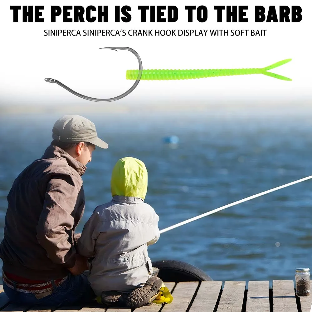 ZUKIBO Texas Rig Jig Ganchos de gusano Gancho de púas desplazado para señuelo de pesca suave Anzuelo de pesca con boca ancha y herramienta de pesca de mango corto