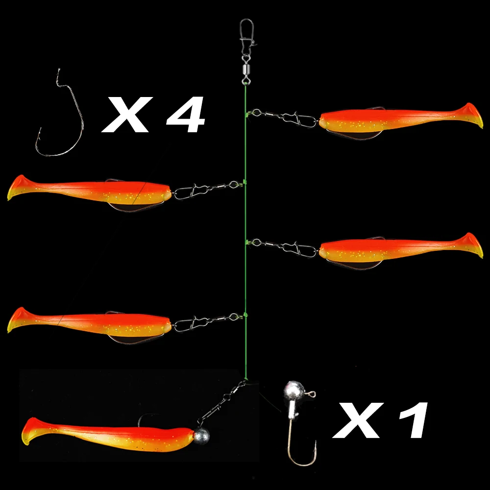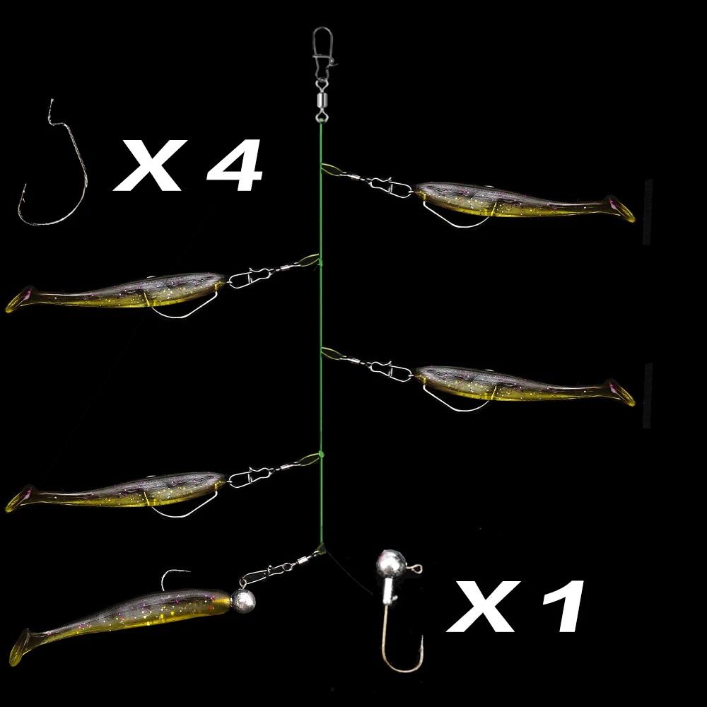 Este juego de aparejos de pesca se compone de 5 cebos. A través de la proporción de ganchos de cabeza de plomo, es dinámico y realista en el agua, con buen efecto de simulación y objetivo obvio.