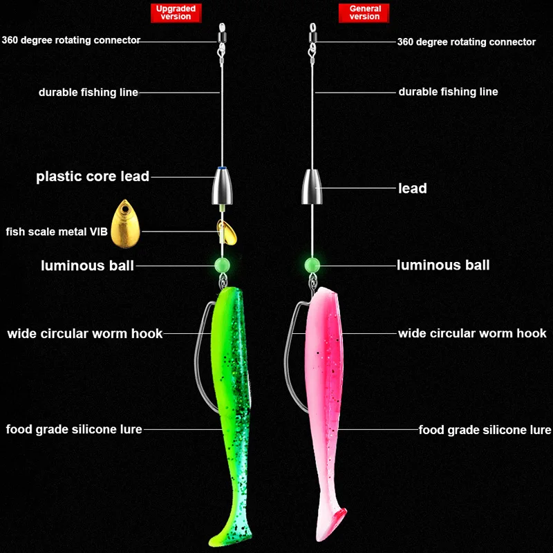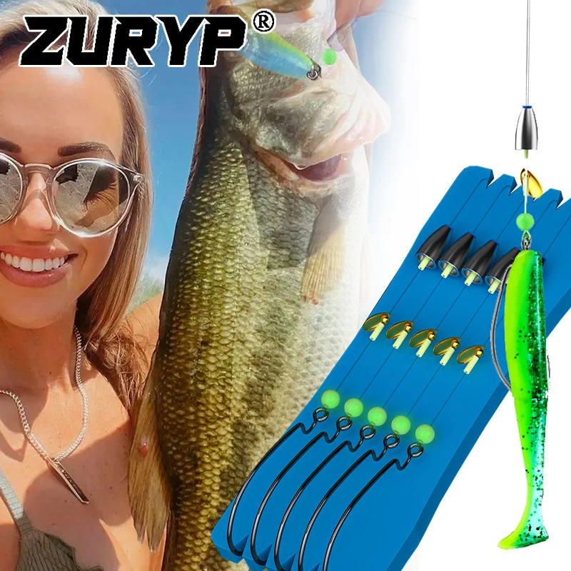 ZURYP-juego completo de cebo blando de silicona con anzuelo de pescado, juego de cuentas de plomo, Señuelos de Pesca, Texas Rig