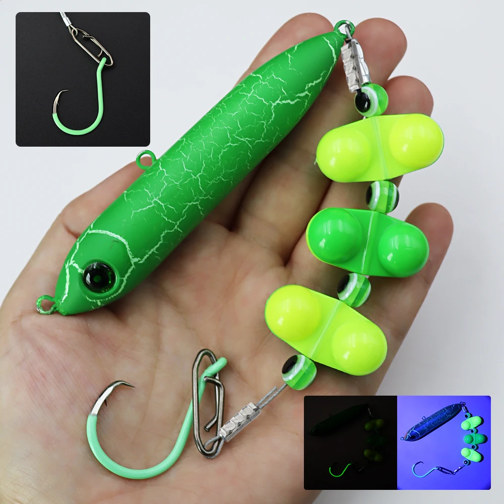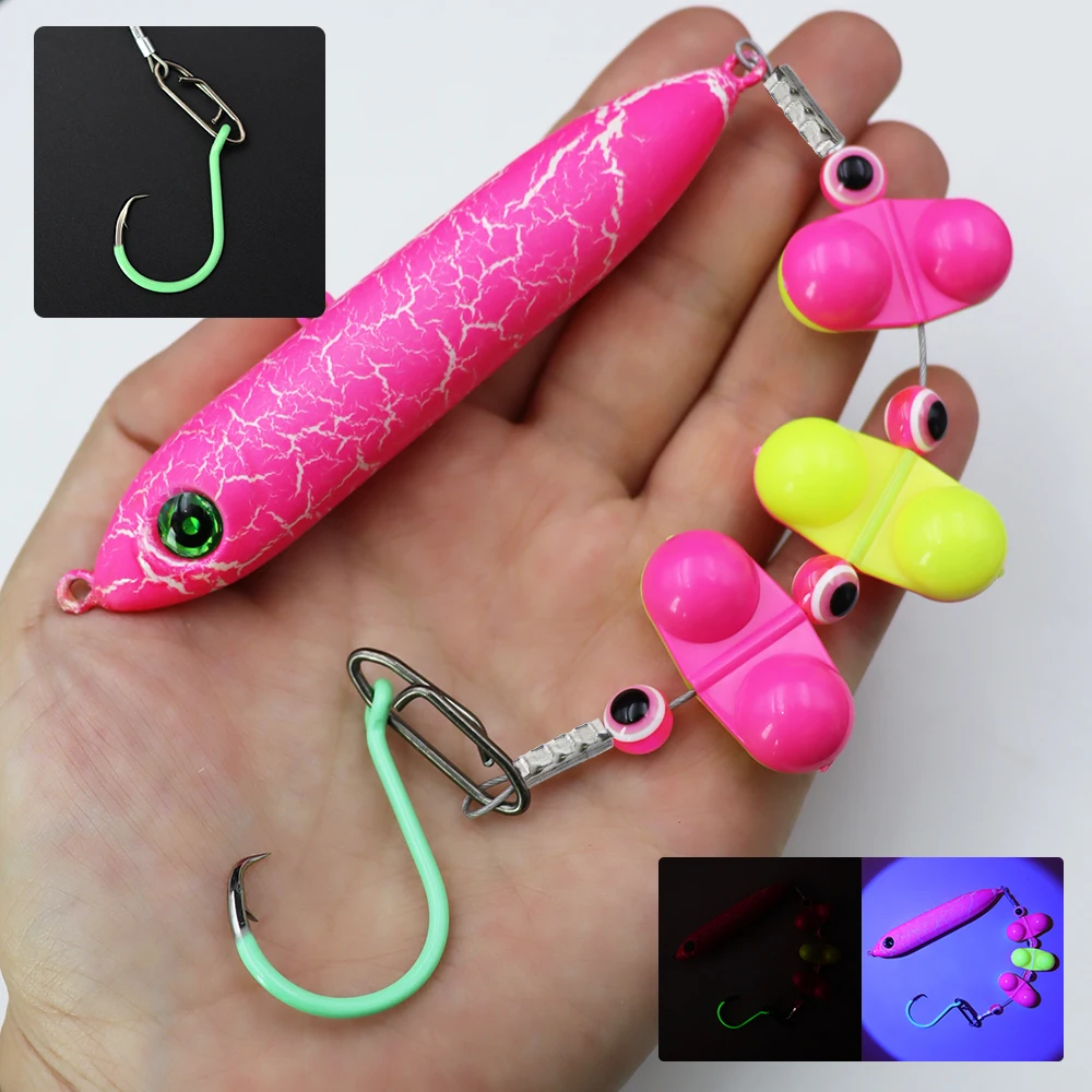 ZYZ 1 pieza de aparejos de bagre con 6/0 # 7/0 # 8/0 # Ganchos circulares luminosos, cebo falso, flotador y cuentas de timbre, Ideal para cebo de pesca de bagre