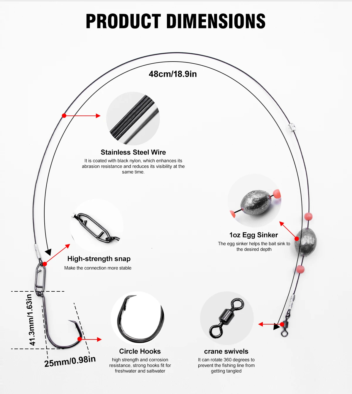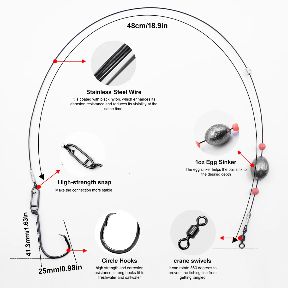 ZYZ, 2 uds., aparejo de pesca de Carolina, aparejos de ingle de agua salada, aparejo de tambor, aparejos de pesca de Surf con anzuelos circulares de plomo de huevo de 28g, aparejos listos