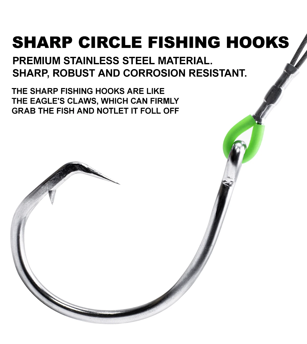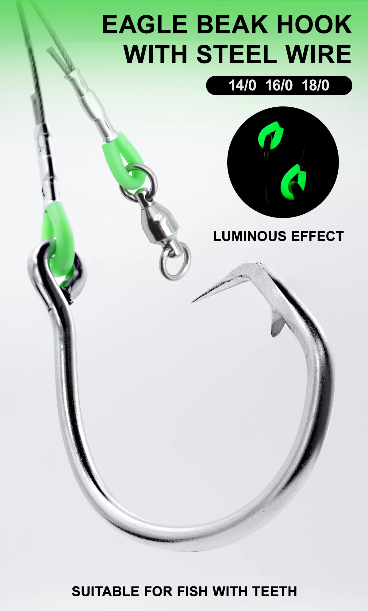 ZYZ 2 unids/lote anzuelos de pesca de mar aparejos de atún grandes 14/0 # 16/0 # 18/0 # Gancho circular con plataformas de tiburón para pesca en barco, alambre de acero de 49 hebras