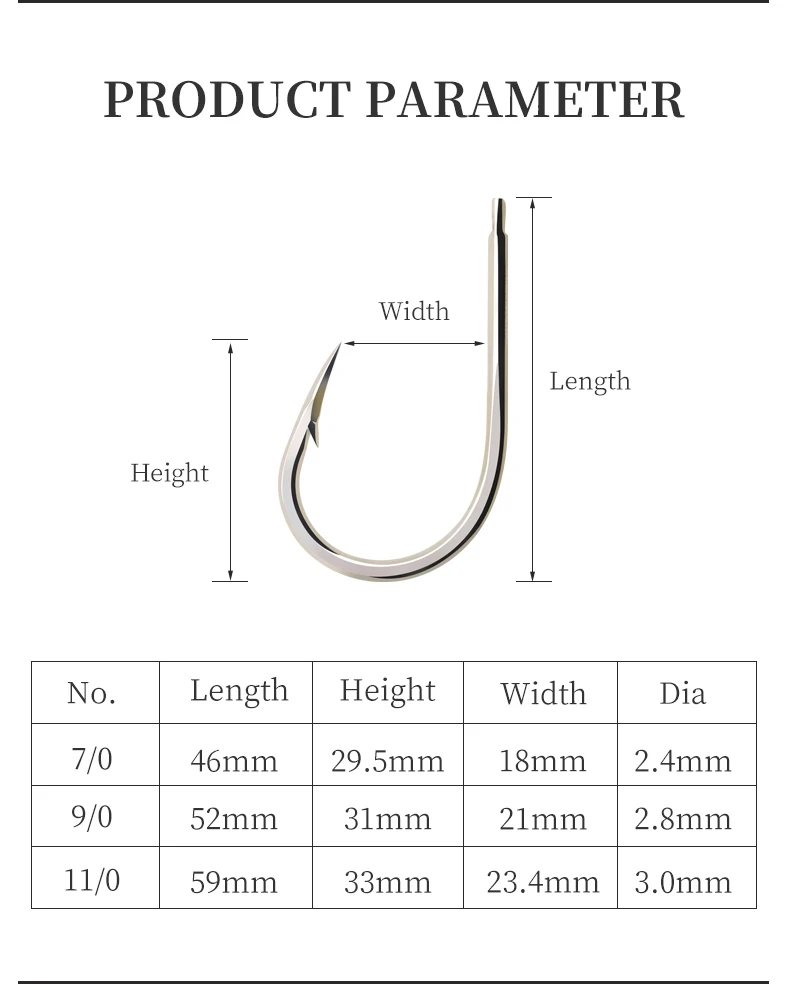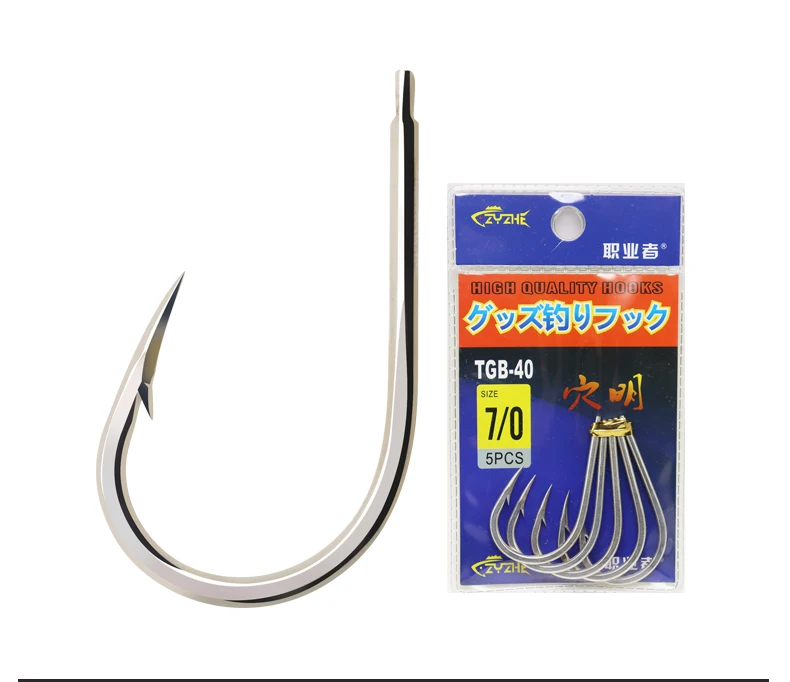 ZYZ 3 ~ 5 anzuelos de pesca de mar tamaño 7/0 # 9/0 # 11/0 # Acero rico en carbono con anillos, anzuelos de pesca para barcos, ideales para peces grandes