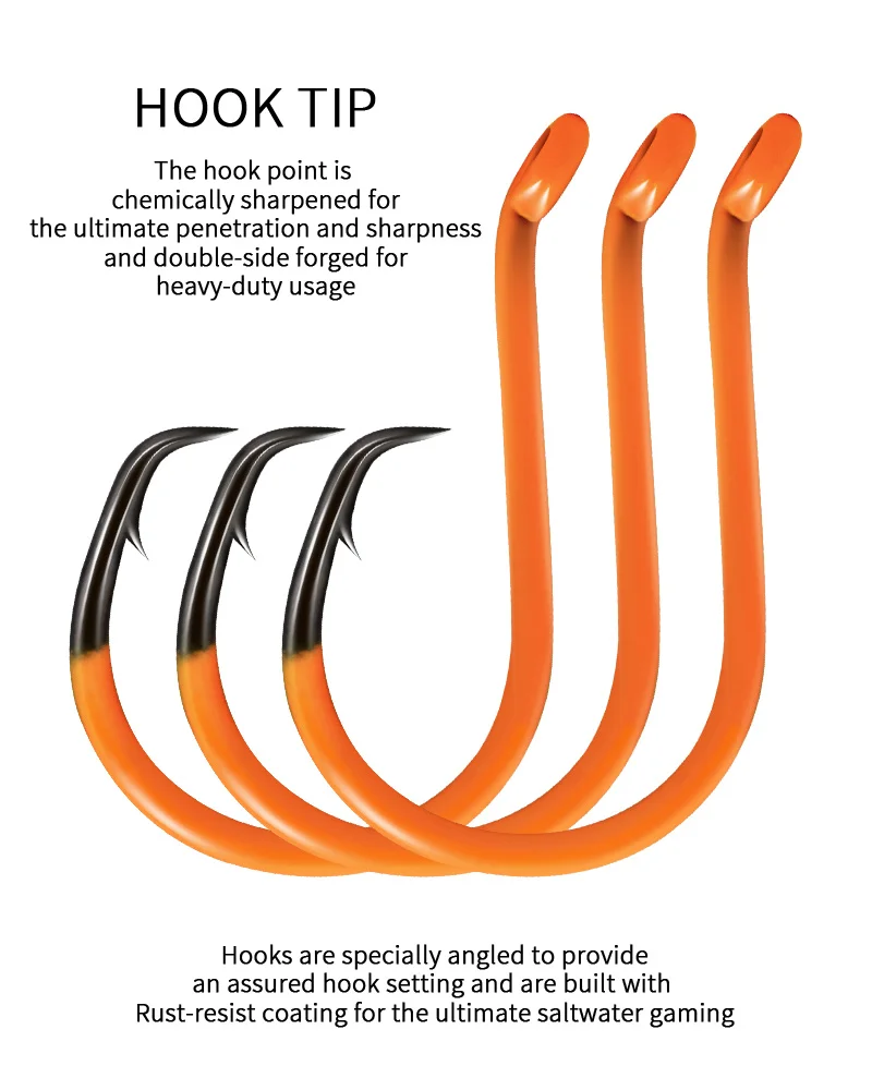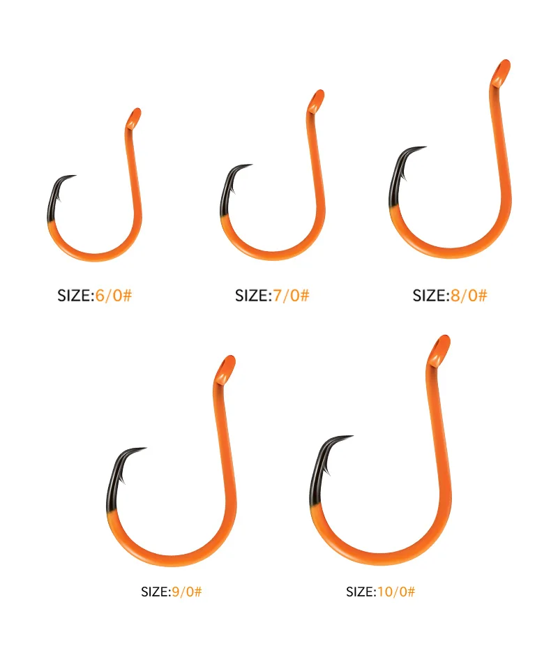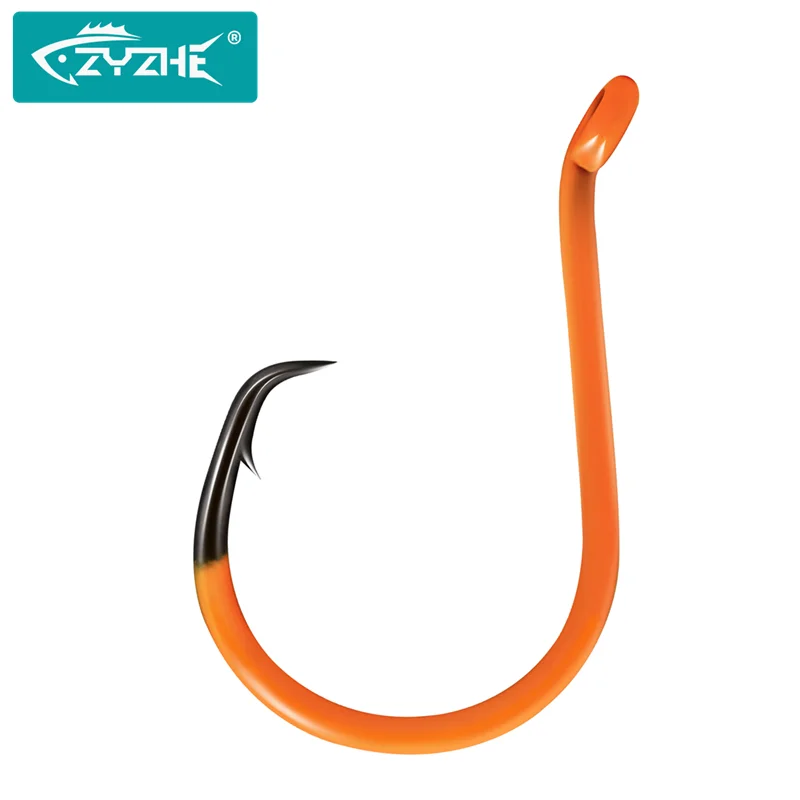 ZYZ 4 ~ 8 unids/lote gancho circular naranja 6/0 # 7/0 # 8/0 # 9/0 # 10/0 # Gancho Hawksbill con revestimiento fluorescente, ganchos de agua dulce y salada