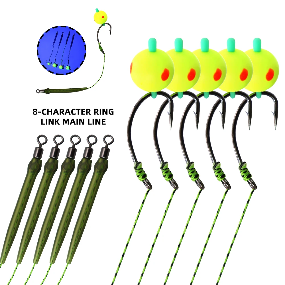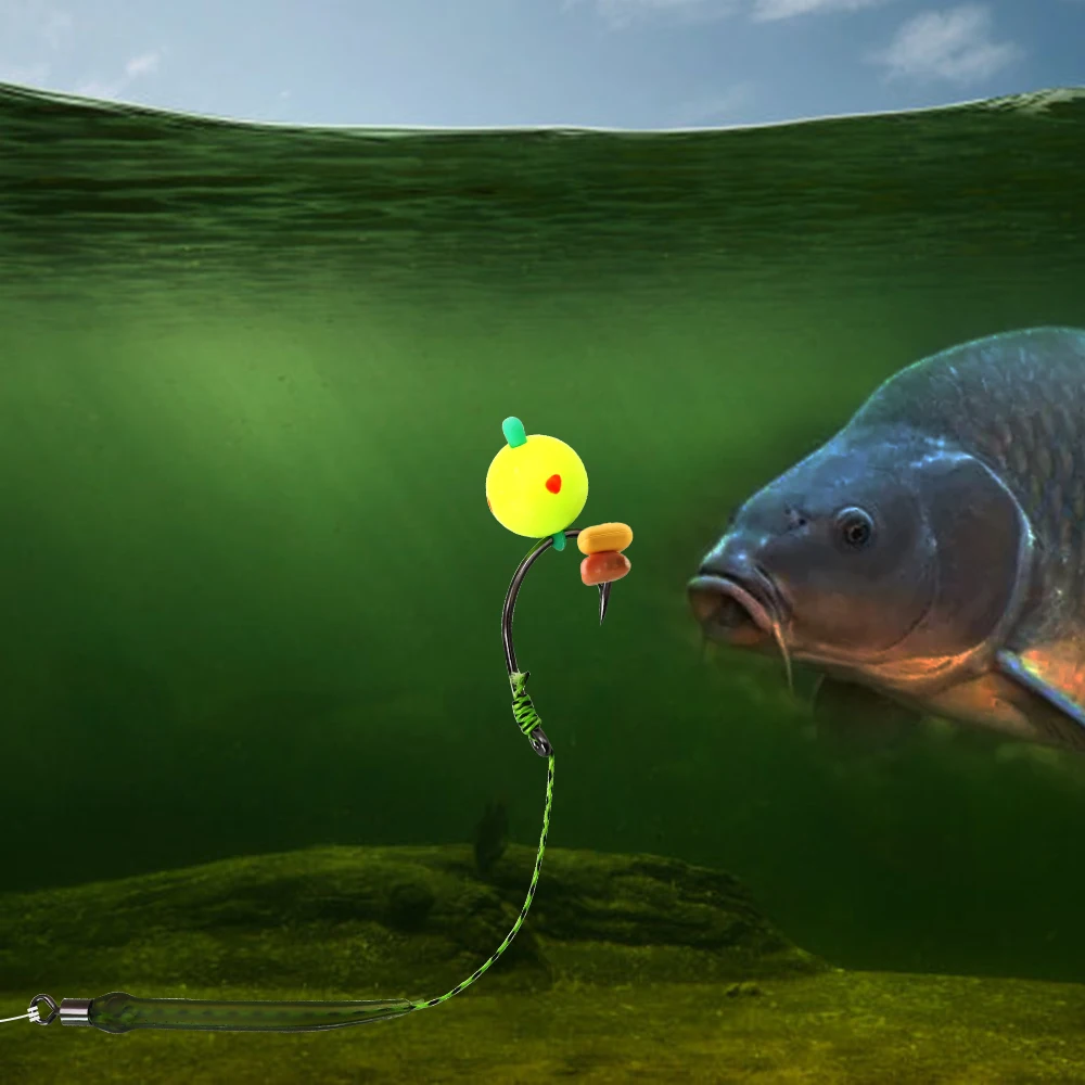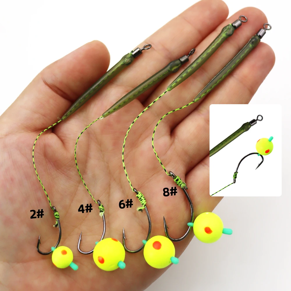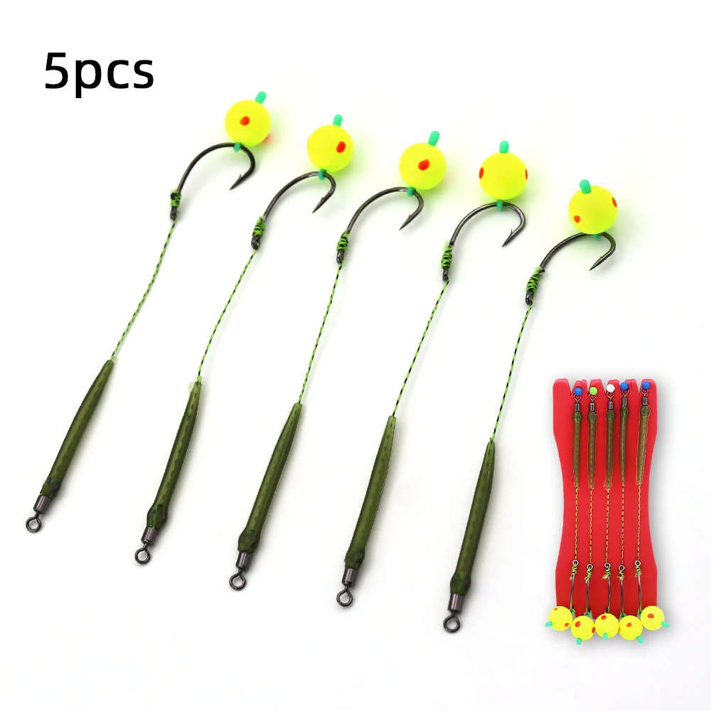 ZYZ 5 unids/bolsa aparejos de pesca de carpa tamaño 2 # 4 # 6 # 8 # Con bola flotante, aparejos de cebo de pesca con fondo inverso, aparejos de pelo para pesca de carpa